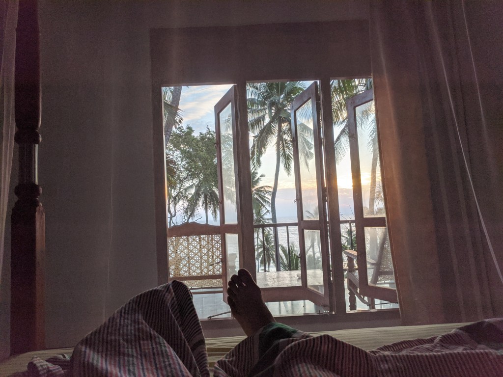 Στο επόμενο σταθμό μας, στην πόλη Μιρίσσα μείναμε στο airbnb Bon Accord. Ο οικοδεσπότης μας ο Parsad, (παλιός τοπικός πρωταθλητής κολύμβησης και πολύ καλός μάγειρας- τρομερό το πρωινό του) μας έδειξε μια φωτογραφία της πόλης τραβηγμένη το 2001. Ούτε ένα κτίσμα στον ορίζοντα, μόνο άμμος και δέντρα. Πλέον πολυάριθμα είναι τα εστιατόρια και ξενοδοχεία που παρεμβάλλονται σε κάθε σημειό, κάτι που σηματοδοτεί δυστηχώς ότι αυτός ο παράδεισος είναι καταδικάσμενος να χτιστέι και να αλλοιωθεί σε μεγάλο βαθμό εάν δεν επιβληθούν περιορισμοί από την κυβέρνηση. Τον ρωτάμε επισής για το παράδοξο θέαμα μερικών τάφων στο μονοπάτι λίγα μέτρα πριν την παραλία. Μας εξηγεί ότι σε όλη αυτή την έκταση που σήμερα στέκονται όλες αυτές οι τουριστικές επιχειρήσεις κάποτε ήταν το παλιό νεκροταφείο της πόλης και οι ντόπιοι δεν περπατούσαν εκεί μετα τις 6μ.μ για να «αποφύγουν τις επιθέσεις φαντασμάτων».