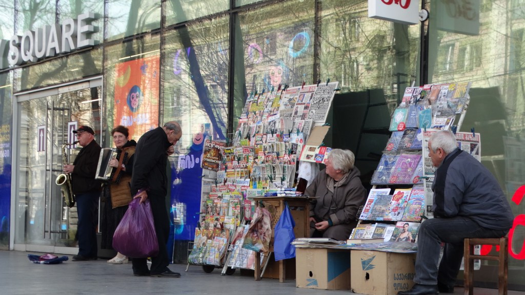 Tέλως μία εμπειρία που αξίζει να την επιχειρήσει κανείς, όχι τόσο για το φαγητό αλλά για την παρέα και την συζήτηση έιναι να οργανώσει ένα γεύμα με ντόπιούς. Εμείς χρησιμοποιήσαμε το site http://www.likealocalguide.com και αφού πληρώσαμε μία μάλλον χαμηλή τιμή, κανονίσαμε να δειπνήσουμε με την Mariam και τον Levan , γύρω στα 25-30 τους και οι δύο, στο σπίτι τους σε ένα προάστιο της πόλης. Η μαγειρική της Mariam ήταν συμπαθητική άλλα το πιο ζουμερό κομμάτι της όλης βραδιάς ήταν το να ακούς ιστορίες από την καθημερινότητα αλλά και την κοσμοθεωρία αυτών των νεαρών γεωργιανών, τι τους απασχολεί , ποιες οι φιλοδοξιες τους για την χώρα τους, πως βλέπουν τον κόσμο γύρω τους. Προφανής είναι η απογοήτευση τους στους πολιτικούς. Αναπάντεχα η κουβέντα φτάνει και στο τοξικό θέμα Ρωσσία. Οι σχέσεις των δύο χωρών παραμένει εξαιρετικά προβληματική μετά τα γεγονότα του 2008, όταν ξέσπασε πολεμική σύρραξη λίγες ώρες πριν την έναρξη των ολυμπιακών αγώνων του Πεκίνου. Οι συγκρούσεις έλαβαν χώρα μεταξύ ρωσσόφωνων αυτονομιστών και του γεωργιανού στρατού στις επαρχίες της Νότιας Οσετίας και Αμπχαζίας και οδήγησαν στον εκτοπισμό 190,000 ανθρώπων από τις εστίες του. Οι περιοχές αυτές παραμένουν υπό Ρωσσική κατοχή κάτι που έχει δημιουργήσει εθνικό τραύμα στον πληθυσμό και αποτελεί αφορμή για συχνές αντιρωσσικές διαδηλώσεις στην χώρα. Οι πολιτιστικοί και ιστορικοί δεσμοί με την Ρωσσία είναι αδιαμφισβήτητοί, το υπαρξιακό δίλημμα που έχει δημιουργήσει στους γεωργιανούς ο παντοδύναμος γείτονας επίσης. Ο εκνευρισμός των οικοδεσπότων μας, ειδικά του Levan για την όλη κατάσταση είναι προφανής.