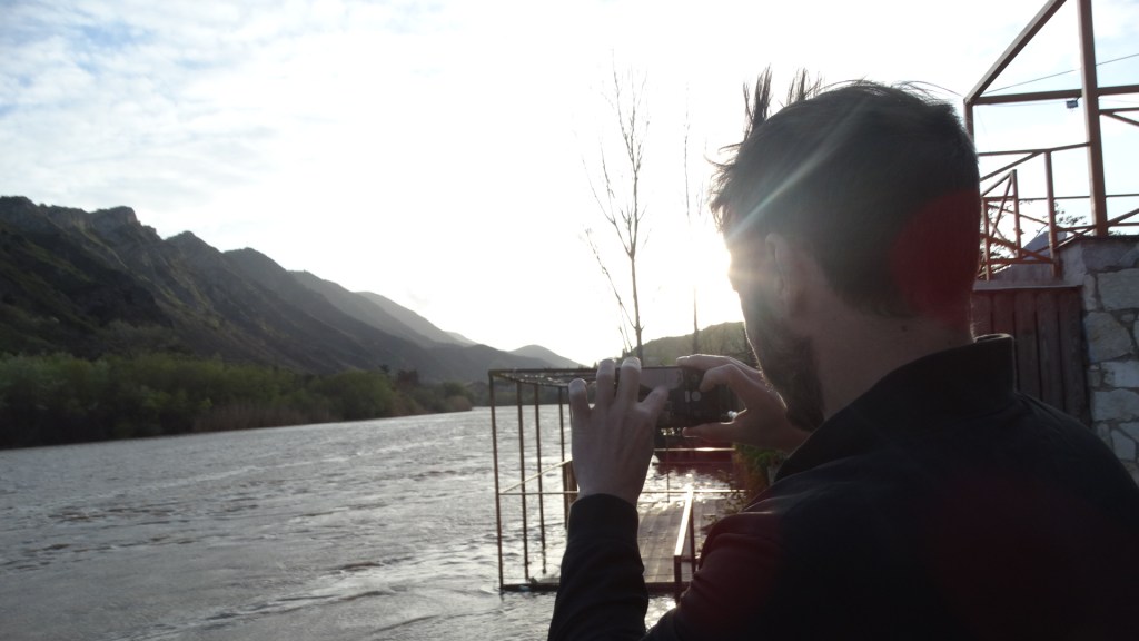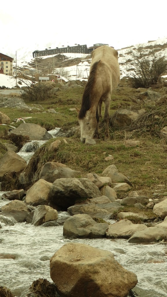 Συνεχίζουμε την πορεία μας και καθώς ανεβαίνουμε υψόμετρο το τοπίο γίνεται αισθητά πιο άγριο, χιόνι αρχίζει να πέφτει και ονόματα όπως Σότσι και Γκρόζνι εμφανίζονται στο google maps στις κοντινές μας περιοχές. Φτάνουμε στο Γκουντάρι, μικρό τουριστικό θέρετρο, πολύ δημοφιλές με τους σκιέρ και σταματάμε για ελληνικό/τούρκικο/γεωργιανό καφέ σε μία καφετέρια στον πρώτο όροφο ενός κτιρίου. Εκεί βρίσκουμε έναν 80ρη γεωργιανό και μία κυρία κοντινής ηλικίας, υποθέτουμε γυναίκα του. Είμαστε οι μόνοι πελάτες, παραγγέλνουμε λοιπόν τους καφέδες και αφου μας τους σερβίρει, η κυρία του μαγαζιού πατάει ένα κουμπί σε μία συσκευή και βάζει στην διαπασών καλοκαιρινή τέκνο μουσική. Την ενημερώνουμε ότι κάτι τέτοιο είναι αχρείαστο και μένουμε να θαυμάζουμε τους μεγαλειώδεις ορεινούς όγκους έξω από το παράθυρο μας.