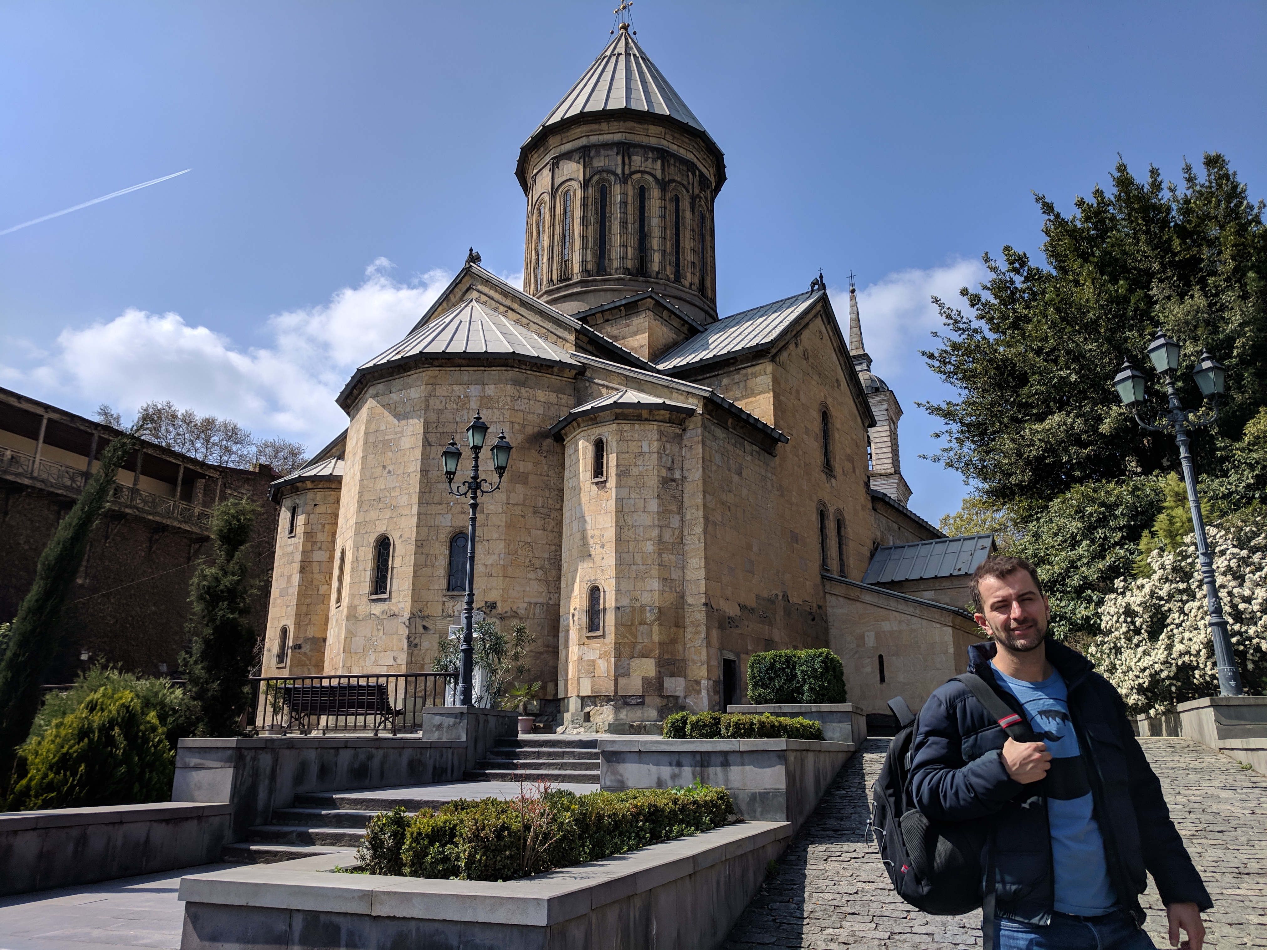 Πρώτη μέρα περίηγησης στην Τυφλίδα και ο καιρός είναι ζεστός και φιλικός. Προσπερνούμε τον σοβιετικής αρχιτεκτονικής ογκόλιθο που αποτελεί το κοινοβούλιο και περπατάμε προς της παλιά πόλη όπου και χανόμαστε στα δρομάκια της γειτονίας του Abanotubani όπου βρίσκονται και πολλά από τα σημεία τουριστικού ενδιαφέροντος της πρωτεύουσας. Βγάζουμε κάποιες φωτογραφίες από τον όμοφρο καθεδρικό ναό Sioni και εισερχόμαστε μέσα για να πάρουμε μία καλύτερη ιδέα για το ιερό. Στο εσωτερικό βλέπουμε κυρίως Γεωργιανούς να προσεύχονται και να κάνουν επανελλειμένα το σταυρό τους. Γρήγορα ένας νεαρός κληρικός καταλαβαίνει ότι έιμαστε τουρίστες και έρχεται προς το μέρος μου. Με ρωτάει αν έιμαι ορθόδοξος και παρόλο που αυτοχαρακτηρίζομαι ως άθεος, του λέω στα αγγλικά πως » ναι, από την Ελλάδα » και εισπράτω ένα συγκρατημένο χαμόγελο του. Το ίδιο χαμόγελο δεν εισέπραξε και ο φίλος και συνταξιδιώτης μου που είναι μορμόνος αμερικανής καταγωγής οπότε την κάνουμε με ελαφρά πηδηματάκια από τον ναό χωρίς να μας το ζητήσει ρητά κανείς. Στη συνέχεια κατευθυνόμαστε στο κάστρο Ναρικάλα εντός των τοιχών του οποίου βρίσκεται ανακαινισμένος ο ναός του Αγίου Νικολάου. Το Ναρικάλα είναι πολύ προγενέστερό της εκκλησίας( χτίστηκε τον 4 αιώνα μ.Χ ενώ το ιερό τον 13 αιώνα μ.Χ ). Παρόλα αυτά οι δύο κατασκευές δένουν αρμονικά η μία μέ την άλλη. Τα μνημεία βρίσκονται σε λόφο ακριβώς πάνω από την παλιά πόλη και όταν υπάρχει ηλιοφάνεια, η θέα είναι πραγματικά το κάτι άλλο. Σας συνιστώ να χρησιμοποιήσετε το τελεφερίκ για να τα προσεγγίσετε. Μπορείτε να το πάρετε από το σταθμό ακριβώς δίπλα από την γέφυρα της Ειρήνης.