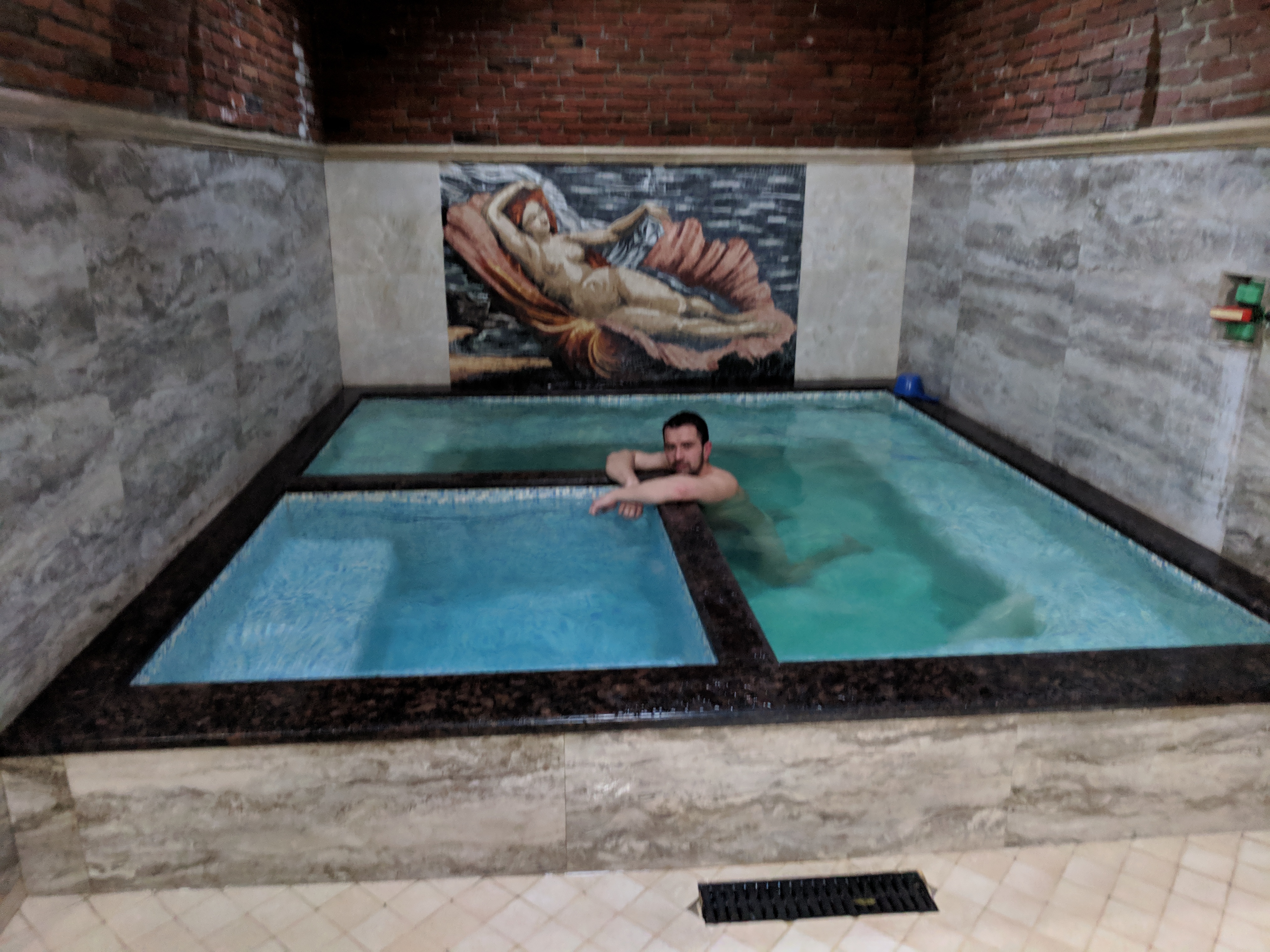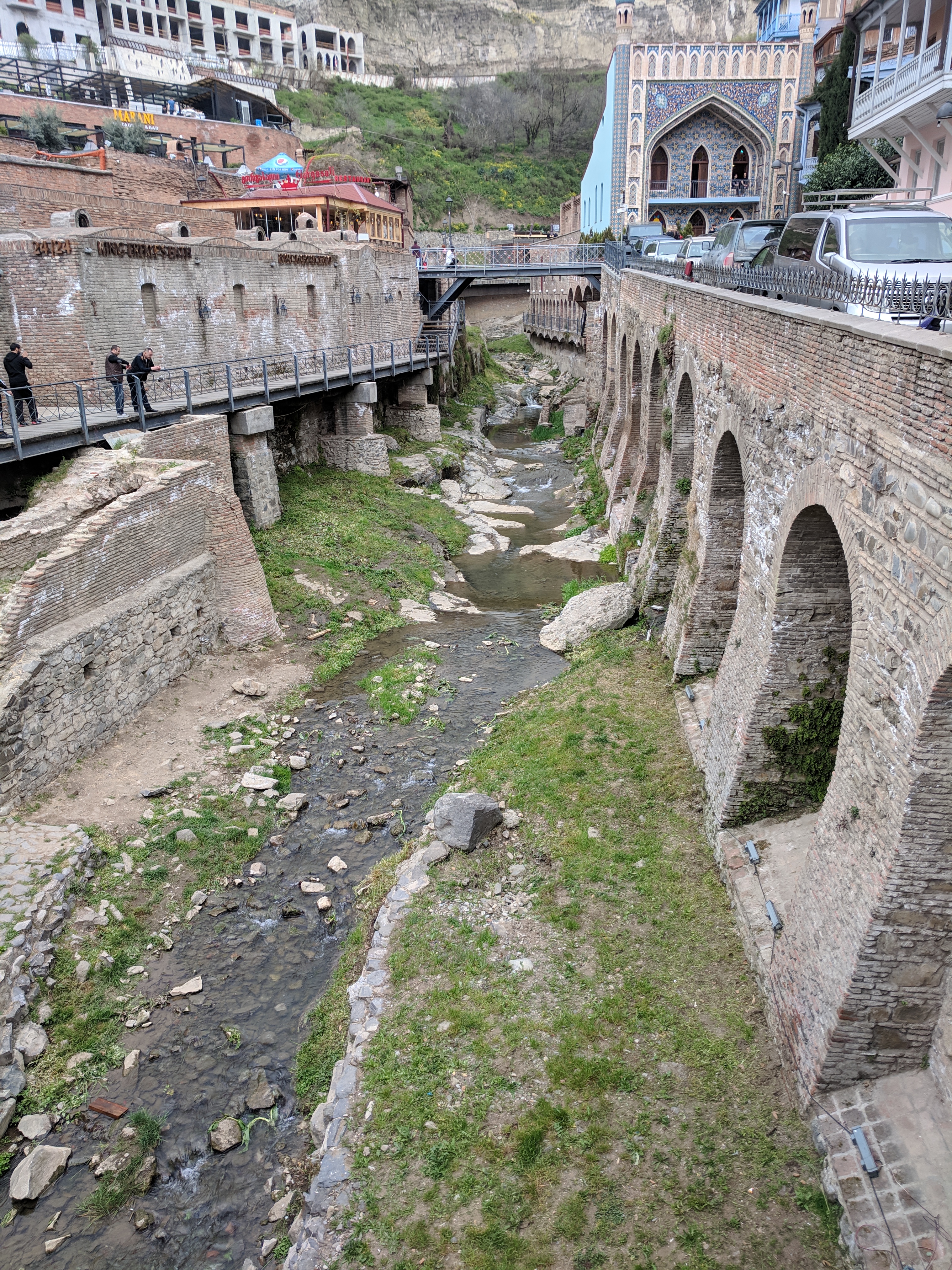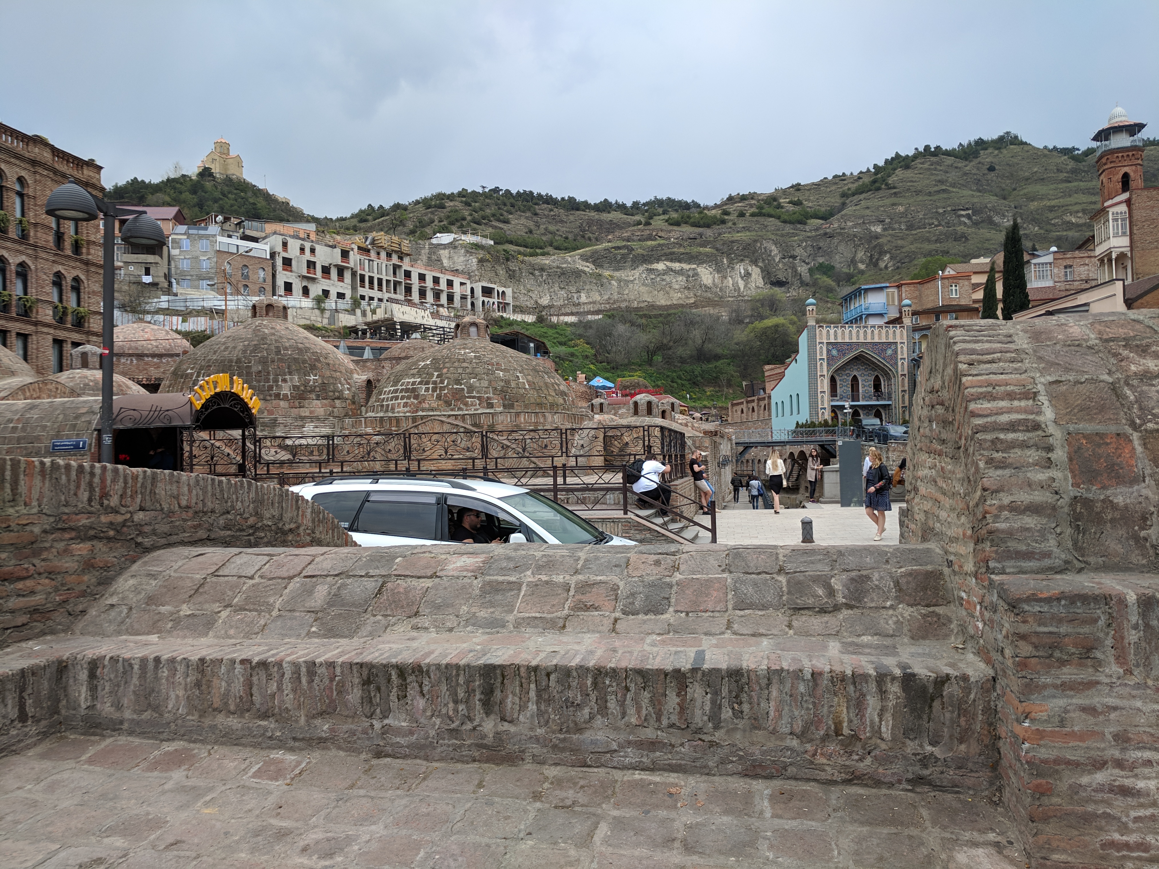 Τέλος προλάβαμε εντός της ημέρας να επισκεφθούμε και τα βασιλικά λουτρά τα οποία βρίσκονται στην ίδια γειτονιά. Πρόκειται για κέντρα θειούχας λουτροθεραπείας, υπάρχουν δέκα διαφορετικά και όλα είναι χτισμένα πάνω σε ιαματικές πηγές. Εμείς διαλέξαμε τα Gulo’s Thermal Spa. Ο επισκέπτης μπορεί να νοικιάσει ιδιωτικό θάλαμο αν θέλει. Φυσιοθεραπεία/μασάζ περιλαμβάνεται στο αντίτοιμο και σε εμάς την εκτέλεσε ένας ελαφρά τρομακτικος σε εμφάνιση μεσήλικας γεωργιανός. Η όλη εμπειρία πάντως ήταν πολύ ενδιαφέρουσα, παρόμοια μεν με τα αντίστοιχα χαμάμ που μπορεί να κάνει κανείς στην Τουρκία ή στο Μαρόκο αλλά και εμπλουτισμένη με κάποια τοπικά χαρακτηριστικά που την κάνουν ιδιαίτερη . Η ίδια η χώρα άλλωστε μοιάζει να έχει επιρροές σε ισοδύναμες δόσεις από Ρωσσία, Μέση Ανατολή και (σε μικρότερο βαθμό ) δυτική Ευρώπη. Ταμπέλες καθώς οδηγείς στους αυτοκινητόδρομους της σε πληρόφορούν για το πόσα χιλιόμετρα σου απομένουν προκειμένου να φτάσεις σε μέρη όπως η Τεχεράνη ή το Γιερεβάν και σε κάτι τέτοιες στιγμές είναι που κατανοείς που ακριβώς βρίσκεσαι στον παγκόσμιο χάρτη.