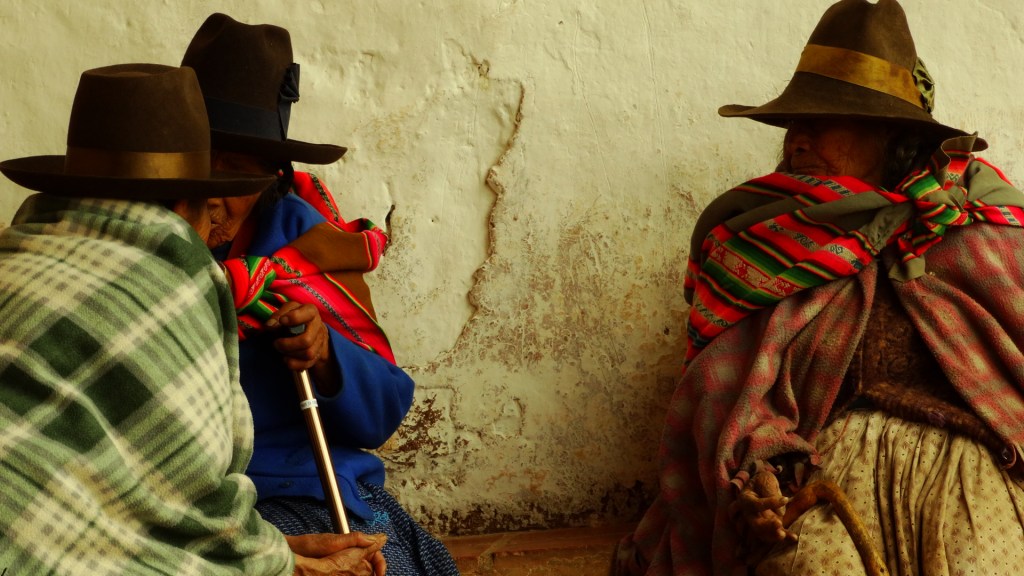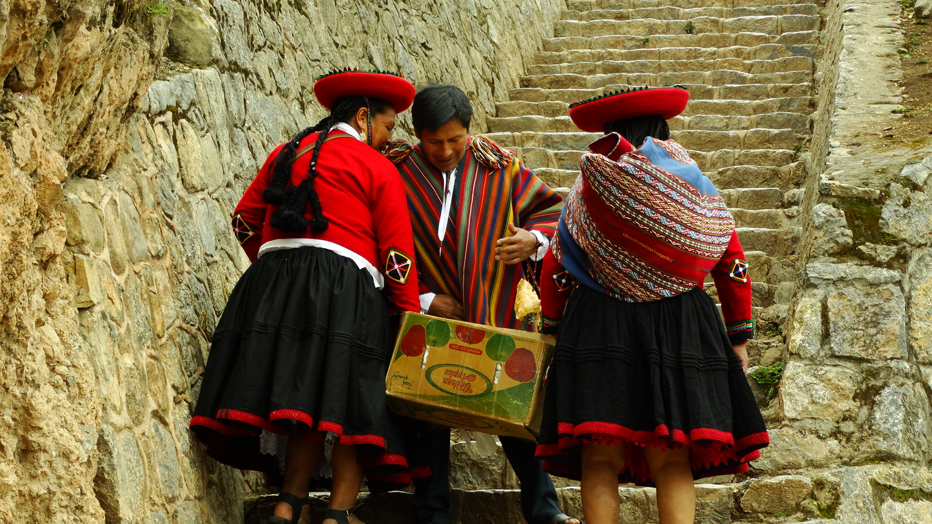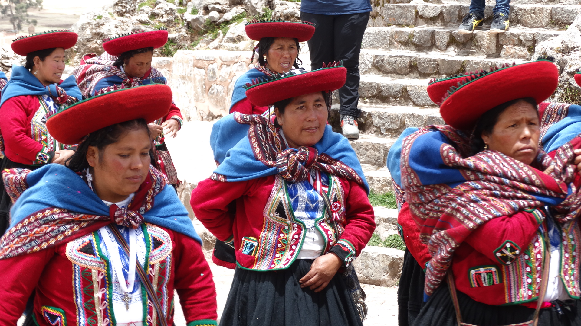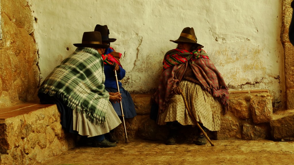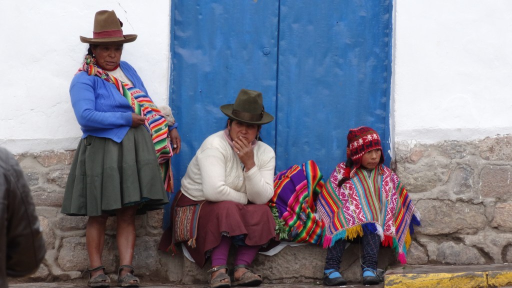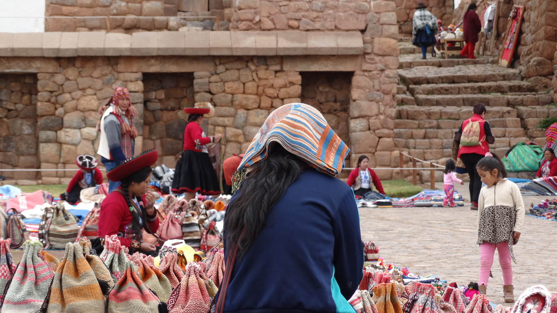 Έξω από την εκκλησία, γεροντάκια κάθονται και συζητούν, μοιάζουν σαν ναναι παγωμένοι στο χρόνο. Στην χώρα αυτή οι ίδιοι οι κάτοικοι με τις έντονα ινδιάνικες φυσιογνωμίες και παραδοσιακές ενδυμασίες τους, αποτελούν ουσιαστικά ζωντανό αξιοθέτο για τον επισκέπτη. Στο Περού υπάρχουν ακόμα πάνω από 40 ινδιάνικες φυλές ( το 26% του πληθυσμού ), 15 από τις οποίες θεωρούνται «αμόλυντες» και δεν έχουν έρθει σε επαφή με τον τωρινό παγκόσμιο πολιτισμό όπως τον εννοούμε εμείς. Η χώρα άλλωστε περικλείει μεγάλες δύσβατες εκτάσεις του Αμαζονίου εντός των συνόρων της. Ρωτάμε τον οδηγό για την πανδαισία χρωμάτων των ρούχων και καπέλων, όλα φτιαγμένα υιοθετώντας μία φολκλορική ύφανση. Μας απαντά ότι είναι κάτι που παραδόξως έχει αυξηθεί μεταξύ των κατοίκων των οικισμών που πλαισιώνουν τα αρχαιολογικά μνημεία, ίσως λόγω του τουρισμού αλλά το θεωρεί θετική εξέλιξη ανεξαρτήτως κινήτρων. Αναρωτιέμαι μήπως η προσέγγιση και οπτική του ξένου τουρίστα είναι εν τέλει κάπως ασυνείδητα ρατσιστική. Παρατηρώ ντόπιες γυναίκες ντυμένες με παραδοσιακά ρούχα να κρατάνε από ένα προβατάκι στο χέρι και να περιμένουν στο πεζοδρόμιο κάποιον τουρίστα να τους δώσει ένα μικρό αντίτιμο για να βγει καμιά φωτογραφία μαζί τους ( πολλοί το κάνουν ) . Σκέφτομαι επιπλέον το τυπικό θέαμα που έχω δει σε πολλούς ευρωπαϊκούς δρόμους (μέχρι και στην Αριστοτέλους στη Θεσσαλονίκη) όπου δύο τρεις νεαροί άντρες με χαρακτηριστικά που παραπέμπουν σε κάποια ινδιάνικη φυλή, τοποθετούν μία φορητή συσκευή αναπαραγωγής μουσικής στο πεζόδρομο, βάζουν στην διαπασών τραγούδια με ινδιάνικα φλάουτα, ντύνονται με όσα φτερά βρουν και αρχίζουν να κάνουν ρυθμικές περιστροφές μουρμουρίζοντας, μιμούμενοι μυστικιστικές τελετές μήπως και τους δώσουν οι περαστικοί κανένα ψιλό. Προφανώς θεωρούν ότι ο καυκάσιος παρατηρητής, ο ευρωπαίος ή δυτικός , έτσι τους βλέπει , έτσι φαντάζεται πως προσεύχονται άνθρωποι σαν και αυτούς, σαν παλιά ταινία του Χόλυγουντ για την άγρια δύση, τόσο μακριά πάει η μονοδιάστατη αντίληψη του για ανθρώπους σαν και αυτούς. Μήπως τελικά οι δύο καταστάσεις δεν διαφέρουν και φανερώνουν μία συντριπτική απλοποίηση και μπαναλοποίησης εκ μέρους μας ενός περασμένου, περήφανου πολιτισμού;