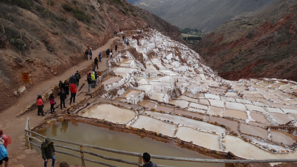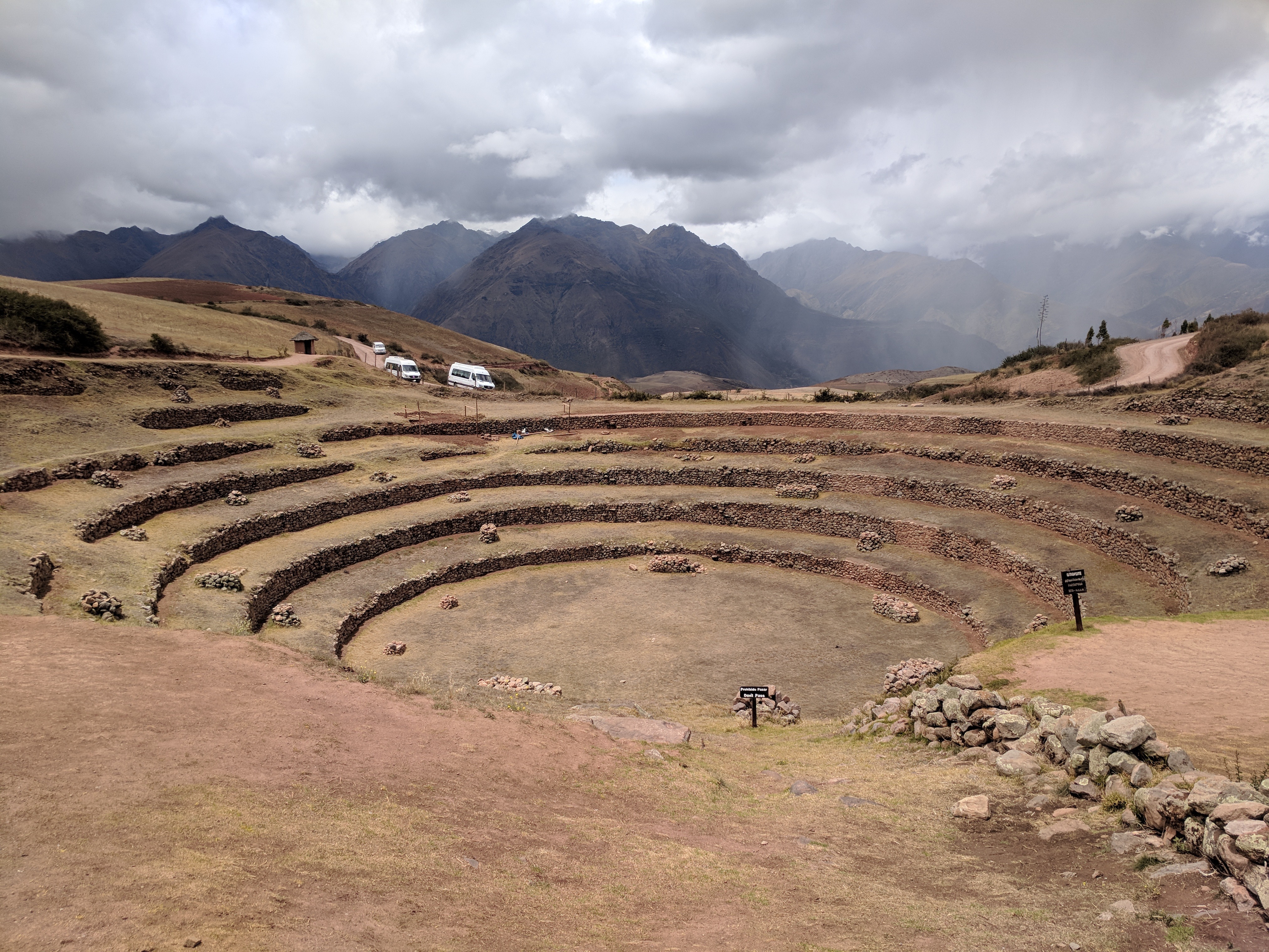 Στη συνέχεια κάνουμε μία στάση στα αλατορειχία του Μάρας ( τα οποία χρονολογούνται στη προ-Ίνκα εποχή) για να βγάλουμε μερικές φωτογραφίες πριν συνεχίζουμε για το Μοράϊ. Το Μοράϊ συνίσταται από τρία βαθουλώματα εντός τους εδάφους αποτελούμενα απο ομόκεντρους κύκλους σταδιακά μειωμένης διαμέτρου. Το θέαμα μοιάζει φαντάζει σαν την απτή απόδειξη ότι ναι, οι εξωγήινοι όντως έχουν επισκέφτει το πλανήτη γη! Κάπως έτσι συνηθίζονται να αναπαριστούντα τέτοια «στοιχεία» στα σίριαλ και στο κινηματογράφο ( το «Signs» του Μ.N.Shyamalan ήταν το πρώτο που μου ήρθε στο νου). Στην πραγματικότητα πρόκειται για αρδευτικά έργα των Ίνκας και μία περαιτέρω έκφανση του πόσο άρρηκτα δεμένη ήταν η λογική αυτού του πολιτισμού με την φύση.