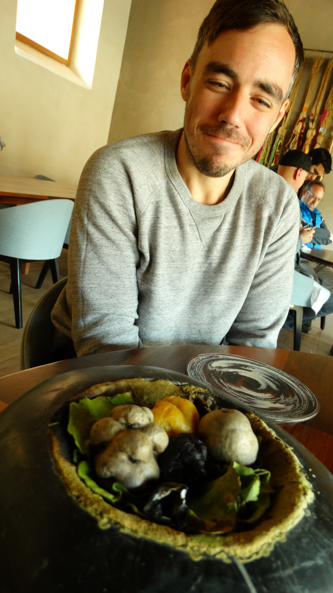 Μετά την περιήγηση μας, γευματίζουμε στο διάσημο εστιατόριο Mil ( είχαμε κάνει κράτησει πριν από μήνες ) το οποίο είναι χτισμένο σε απόσταση αναπνοής από την είσοδο του αρχαιολογικού χώρου. Αποτελεί το δεύτερο μαγαζί του διάσημου σεφ Virgilio Martinez. Το μενού είναι προκαθορισμένο και περιλαμβάνει οχτώ πιάτα με μικροσκοπικές μερίδες και απολαυστικές αν και αρκετά μυστηριώδεις γεύσεις. Οι σερβιτόροι τονίζουν το γεγονός ότι όλα τα συστατικά είναι προερχόμενα απόκλειστικά από τα εδάφη της περιοχής. Μέχρι και το νερό προέρχεται από το λιωμένο χιόνι των Άνδεων.