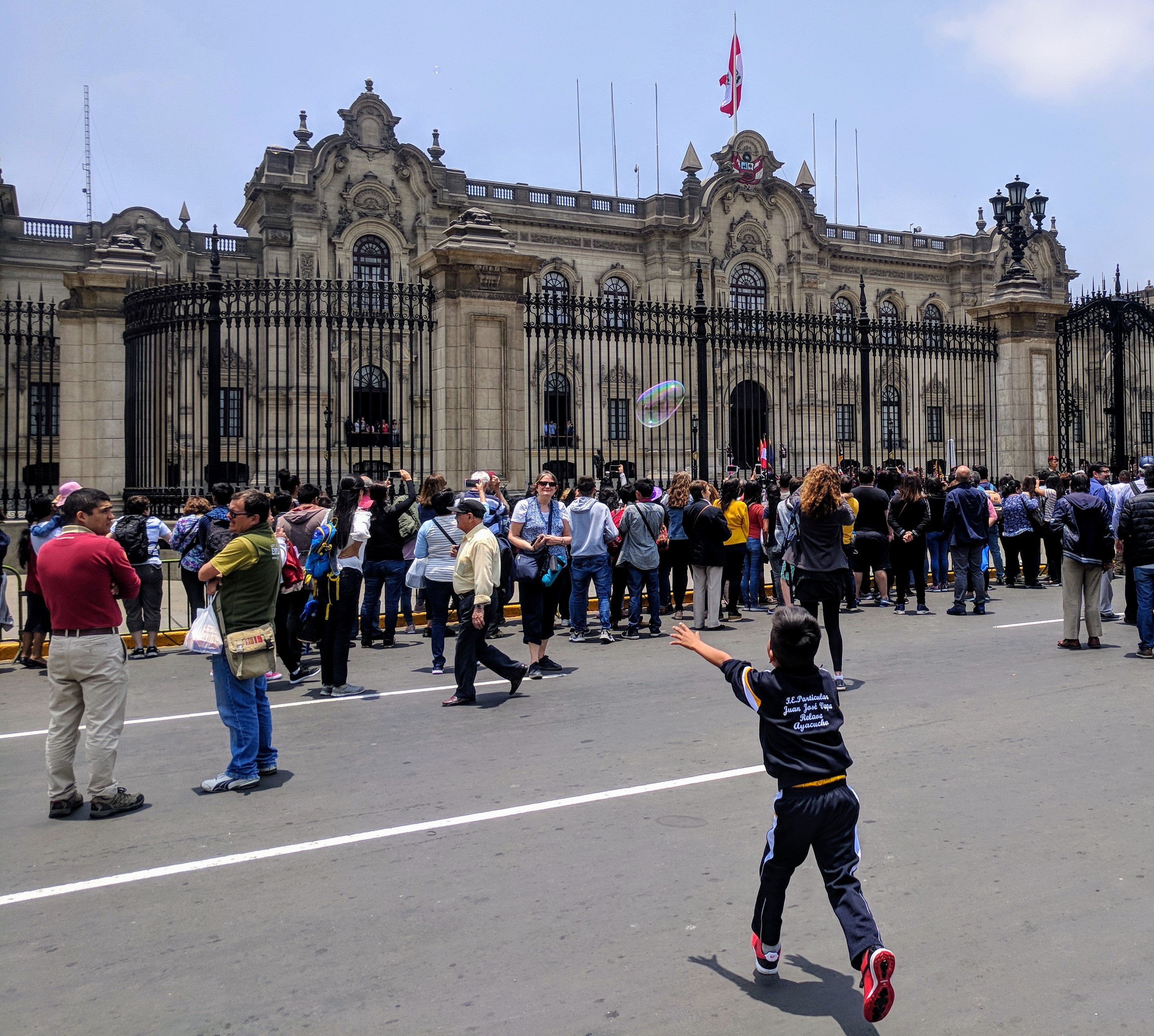 Την δεύτερη μέρα μας επιλέγουμε να συμμετάσχουμε σε ένα free walking tours, από αυτά που οργανώνονται πλέον παντού στον κόσμο από νέους επίδοξους ξεναγούς. Στο τέλος συνεισφέρει ο καθένας ένα φιλοδώρημα, ανάλογο του πόσο πιστεύει ότι τον ικανοποίησε η εμπειρία. Η Λίμα είναι μία άνιση αρχιτεκτονικά πόλη με κοιτήδες πολιτισμου ( για παράδειγμα η εκθεση ζωγραφικής του Andres Zevallos ακριβώς απέναντι από ένα τρισάλθιο McDonald’s ) καταχωνιασμένες σε παντελώς αδιάφορους δρόμους. Τα κλασσικά κτίρια ισπανικής αρχιτεκτονικής ομορφαίνουν κάπως το κέντρο. Αποκορύφωμα το κτίριο του κοινοβουλίου στην Plaza Bolivar.
