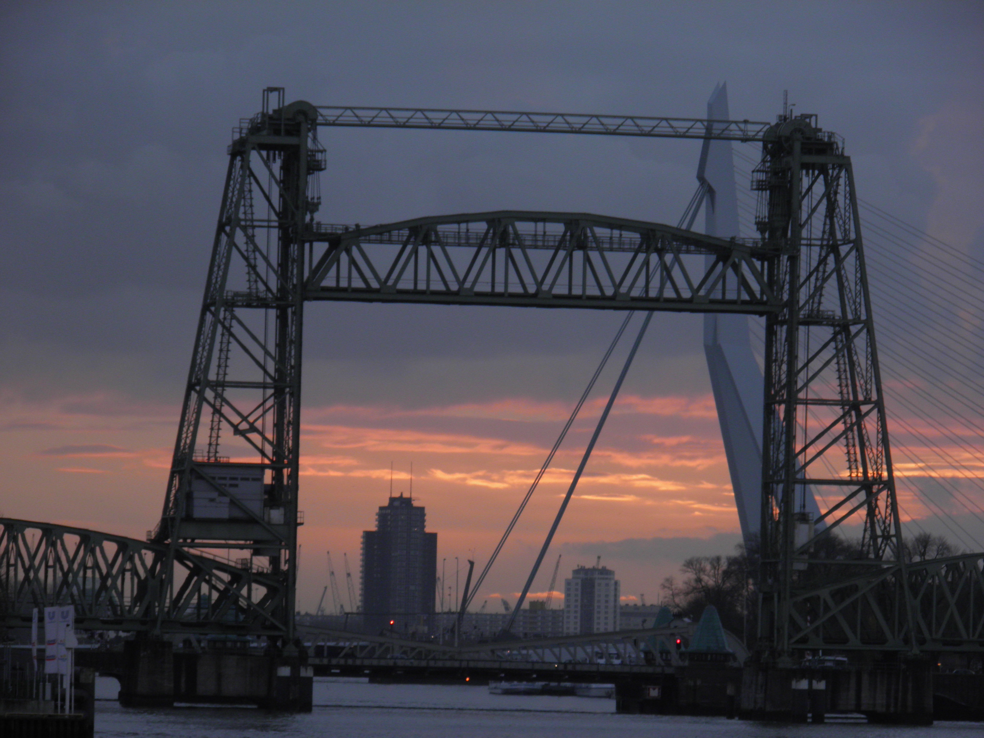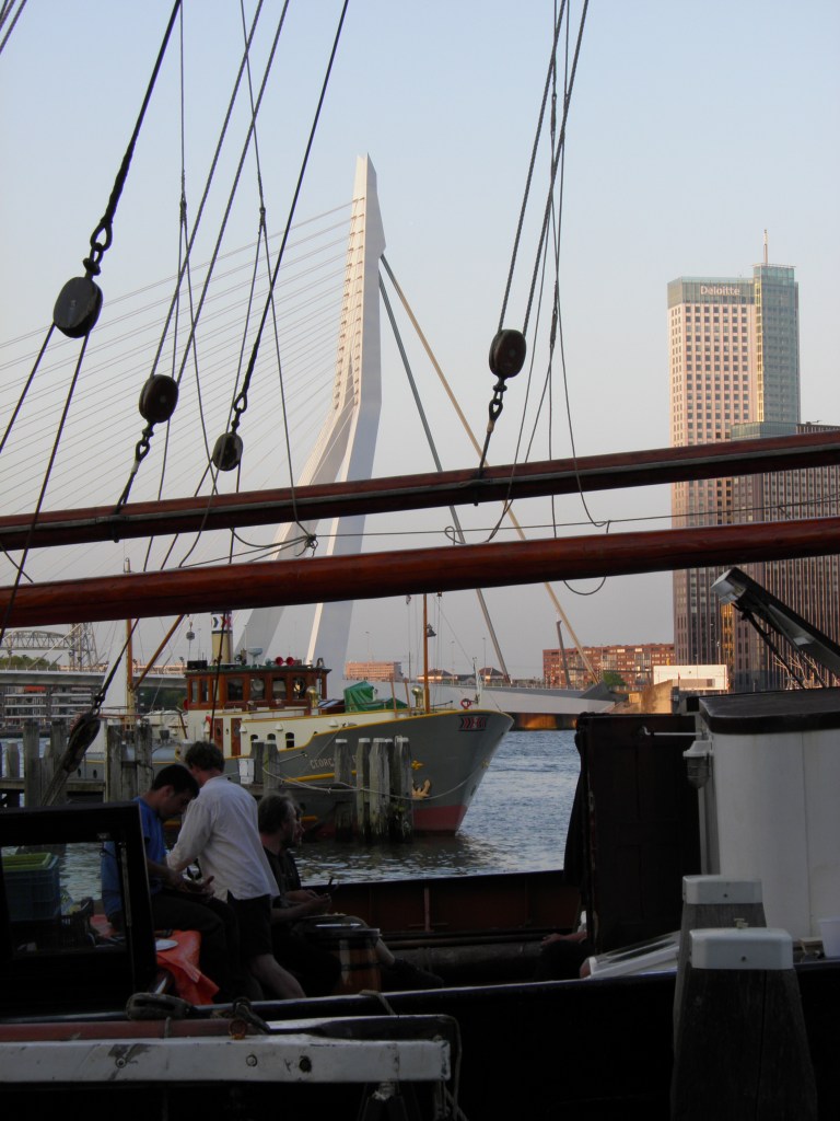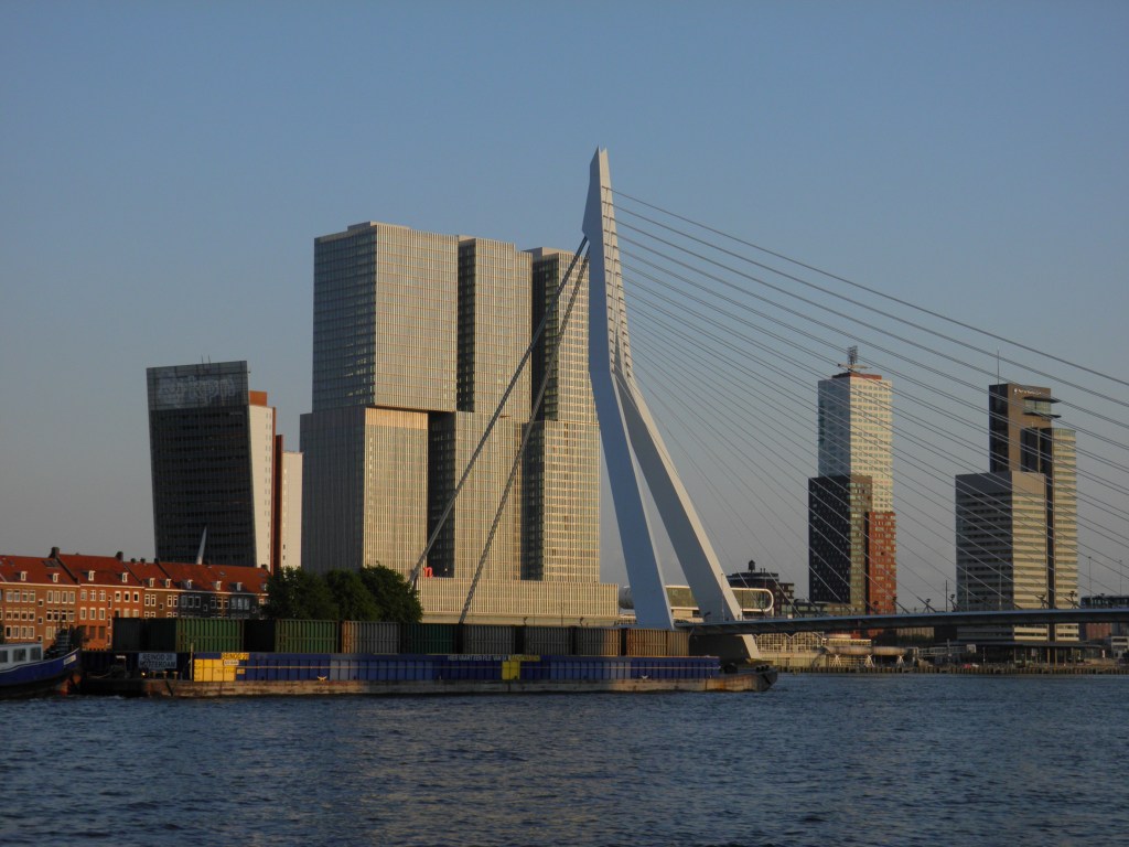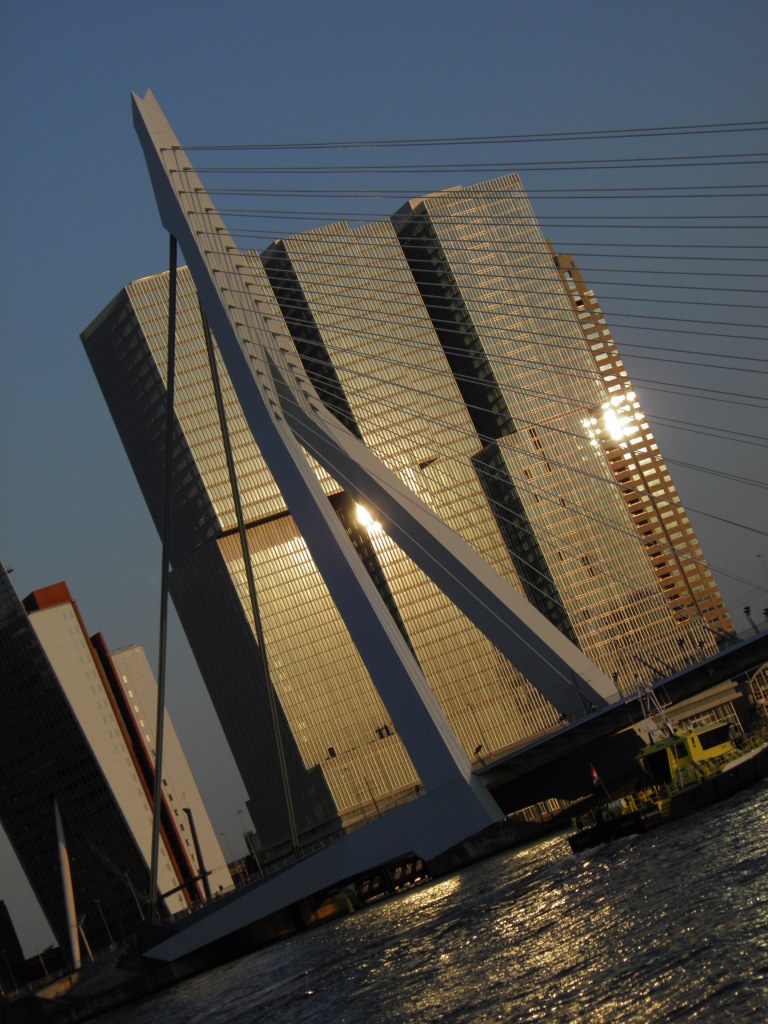 Το πιο καραμπινάτο αξιοθέατο του Ρόττερνταμ πάντως και θέμα των περισσότερων καρτ-ποστάλ που πουλιούνται εδώ είναι η γέφυρα Εράσμους (Erasmusbrug) πάνω από τον New Meuse (παραπόταμο του Ρήνου). Η κρεμμαστή αυτή γέφυρα έχει ύψος 139 μέτρα και το παρατσούκλι «Ο Κύκνος» λόγο του σχήματος της. Μία βόλτα στην περιοχή της σαγηνεύει, ειδικά η νυχτερινή της θέα με φόντο τους τρίδυμους ουρανοξυστες στην απαρχή της γειτονιάς του Kop Van Zuid. Όταν κάποιος πληκτρολογεί αυτά τα μνημεία ή απλά τη λέξη Ρόττερνταμ στο google, οι πρώτες εικόνες που εμφανίζονται στην οθόνη θυμίζουν αμερικάνικες μεγαλουπόλεις και διακρίνονται από ένα λαμπερό μοντερνισμό. Παρόλα αυτά η ζωή στην δεύτερη μεγαλύτερη πόλη της χώρας είναι όπως ανέφερα και προηγουμένως ιδιαίτερα ανθρώπινη. Ποδηλατόδρομοι πάντού, πλατιοί εμπορικοι πεζόδρομοι, τζόγκινγκ στις παραποτάμιες ακτές της, ψώνια δύο φορές την εβδομάδα στην υπάιθρια ψαραγορά για να βρούμε ντόπιo μπακαλιάρο ή γλώσσα αλλά και μάγκο από το Σουριναμ ( πρώην αποικία) ή την τούρκικη εκδοχή της φέτας. Αυτά έχω να θυμάμαι και να νοσταλγώ από το Ρόττερνταμ το οποίο αρχίζεις να αγαπάς αυθόρμητα μετά από λίγο καιρό όχι όμως και με την πρώτη ματιά. Ο τουρίστας ίσως να φύγει ασυγκίνητος. Ο νέος κάτοικος όμως δεν μπορεί παρά να εκτιμήσει το πόσο άψογα λειτουργούν τα πάντα σε αυτό το δυναμικό ευρωπαϊκο λιμάνι.