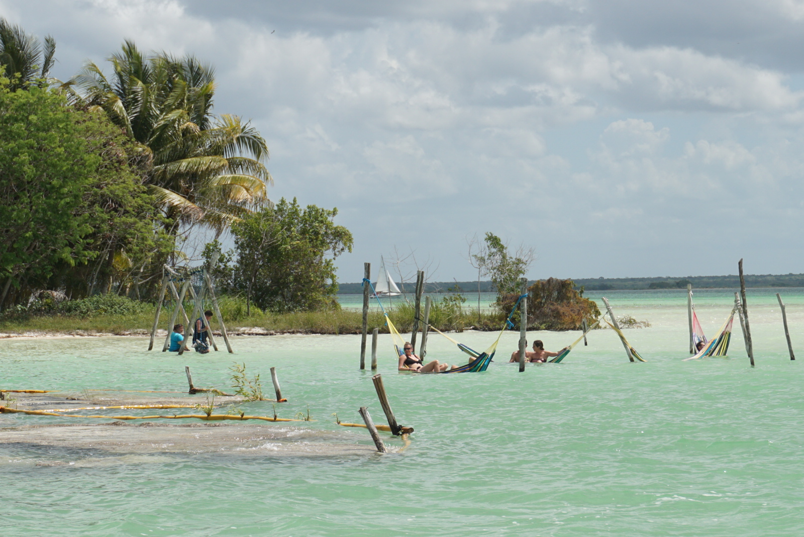 Την επόμενη πετάμε ως την πόλη Chetumal. Από το αεροδρόμειο παίρνουμε ταξί για να καταλήξουμε λίγο βορειότερα, στον οικισμό Bacalar. Σκοπός μας να επισκεφθούμε την λιμνοθάλασσα που βρίσκεται ακριβώς δίπλα του. Ίσως λόγο του γεγονότος ότι η πλειοψηφία των τουριστών στο Μεξικό αναζητά κυρίως παραλία, μπαρ και κρεπάλη, το συγκεκριμένο μέρος έχει σαφώς πιο ήπιους ρυθμούς και γνήσια τοπικό άρωμα από ότι το διάσημο Tulum ή η Playa de Carmen. Μεξικανοί ζουν, διασκεδάζουν και αναπνέουν κανονικά εδώ. Δεν εργάζονται απλά σε καταλύματα και εστιατόρια για να προσφέρουν υπηρεσίες στους τουρίστες.