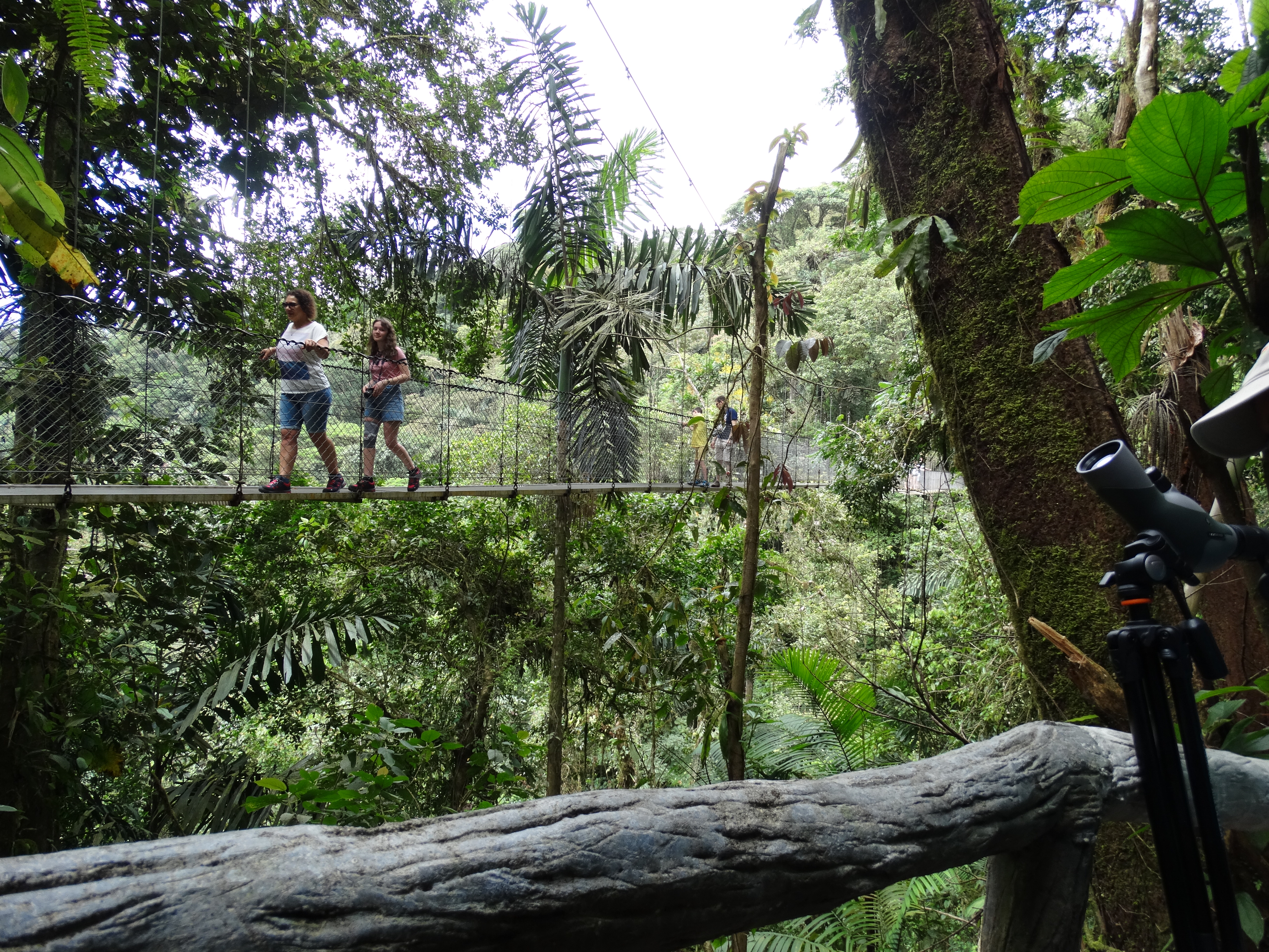 Επόμενος σταθμός το MONTEVERDE όπου και μένω στην αδιάφορη μα επαρκής στις υπηρεσίες της Santa Elena. Επισκέφτηκα το περίφημο Monteverde Cloud Forest Biological Reserve ( ενδιαφέρον ορισμός! «Απόθεμα τροπικού δάσους» ) όπου και πραγματοποίησα πεζοπορία με την βοήθεια τουριστικού οδηγού τον οποίο κλείνεις στην είσοδο. Πρόκειται για εύκολη διαδρομή την οποία μπορεί κανείς θεωρητικά να επιχειρήσει και μόνος του όμως η παρουσία του ΚοσταΡικανού κάνει τη διαφορά διότι θα παύετε στις σωστές στιγμές και θα παρατηρήσετε τι συμβαίνει γύρω σας με τα κυάλια ή τον γενικότερο εξοπλισμό που αυτός παρέχει. Συμβάλλει λοιπόν με την αναντικατάστατη πείρα του, αναγνωρίζοντας το κάθε κελάηδισμα και ξέροντας σε ποιο κλαδί και πότε να εστιάσει. Στην πύλη της εισόδου, καθώς περιμένω το λεωφορείο της επιστροφής, μία ομάδα από μικρά θηλαστικά παντελώς άγνωστα στα δικά μου μάτια τριγυρίζουν ανέμελα ψάχνοντας για τροφή. Μετά από έρευνα στο δυαδίκτιο μαθαίνω ότι ονομάζονται Coatimundi ή Κοάτι, ένα είδος λατινοαμερικάνικου ρακούν.