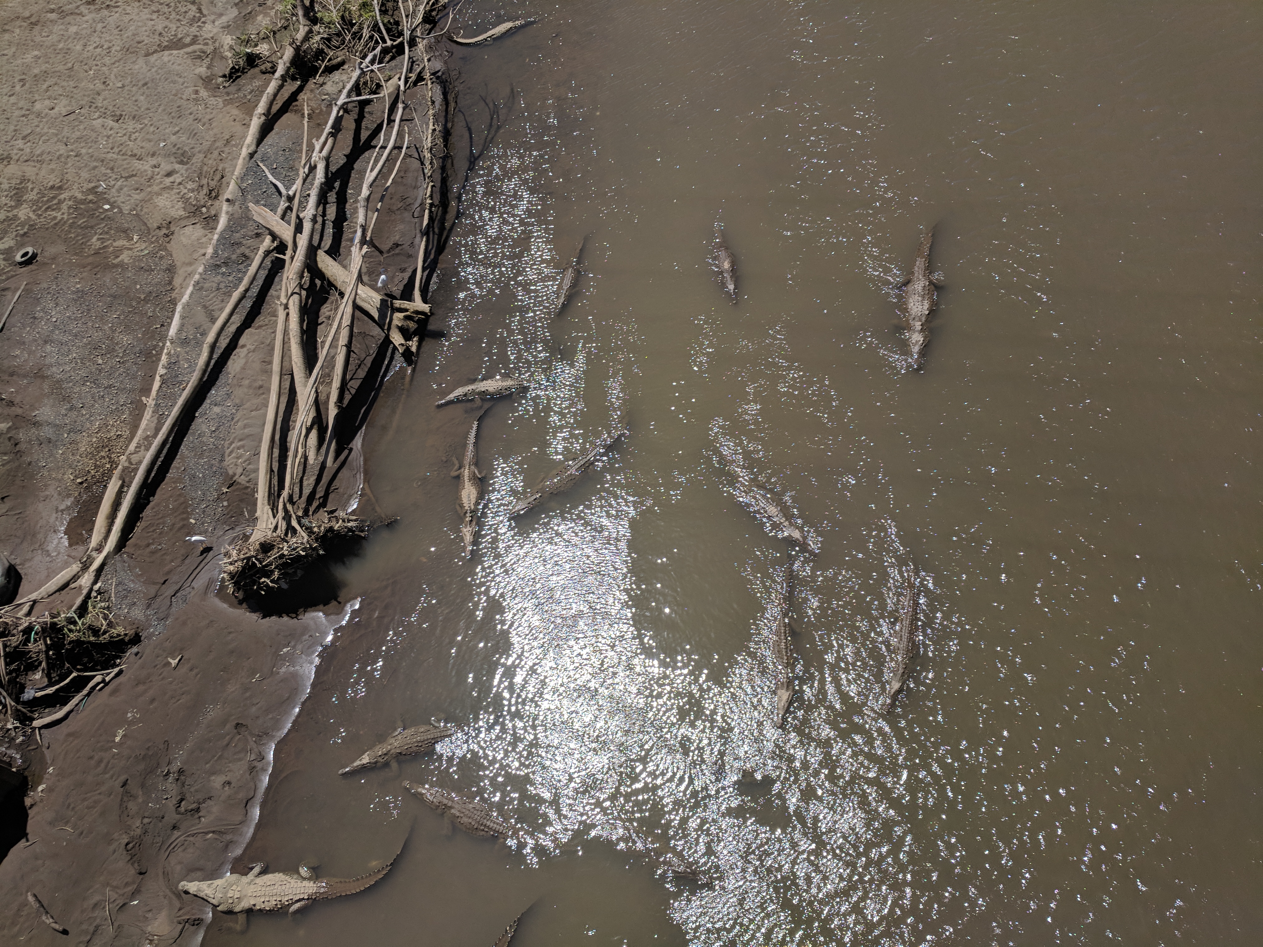 Συνεχίζω την επόμενη οδικώς από το Monteverde στο Manuel Antonio οπότε και σε κάποια στιγμή της διαδρομής περνάμε από τον ποταμό TARCOLES, διάσημο υδροβιότοπο κροκοδείλων. Ο επισκέπτης μπορεί να σταματήσει το αμάξι του στη γέφυρα και να θαυμάσει/φρικάρει από την θέα των αμφίβιων θεριών που έιναι σχεδών πανταχού παρόντα. Πράγματι, το αδιαχώρητο συνέβαινε και όταν πέρασα από το σημείο και εγώ. Διόργανωνονται βαρκάδες από τοπικά τουριστικά πρακτορεία, κάτι που στο δικό μου μυαλό αγγίζει τα όρια της παράνοιας