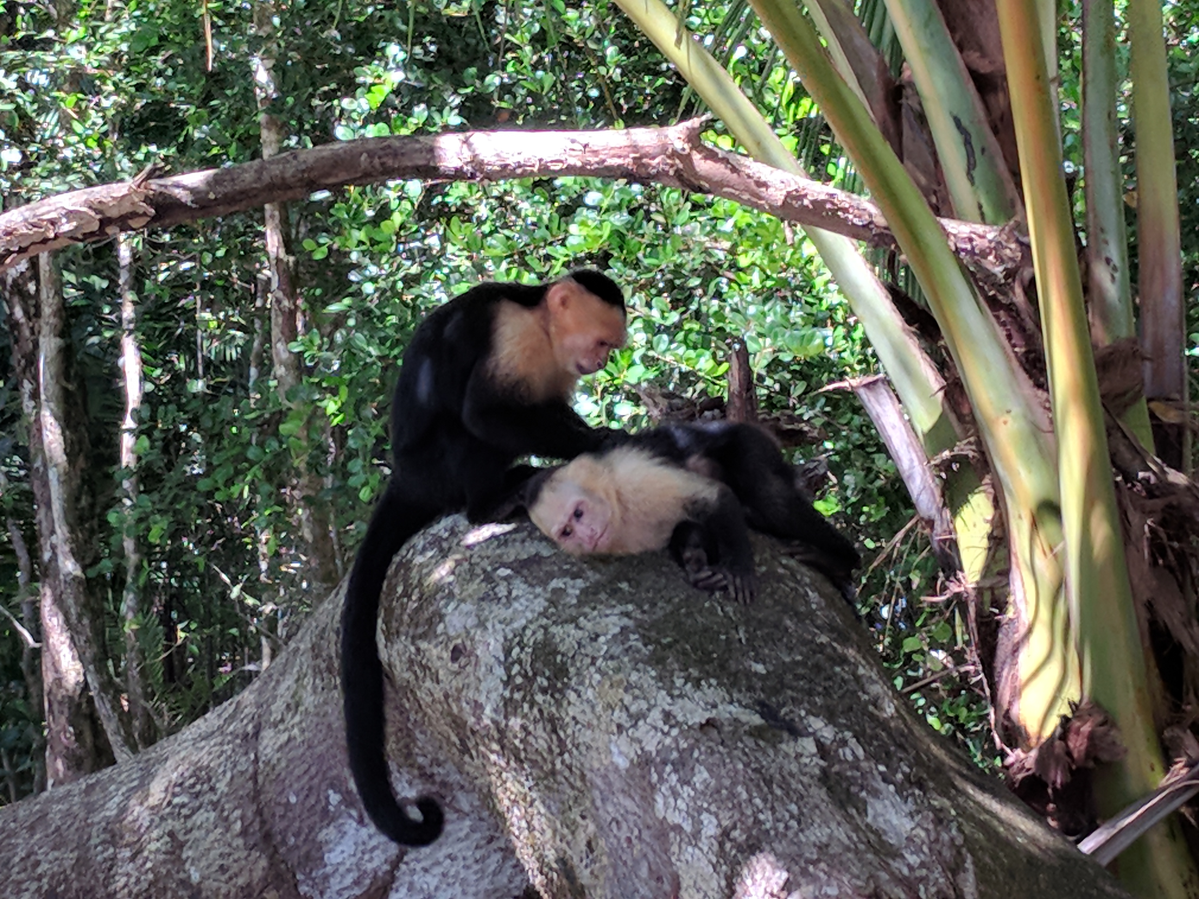 MANUEL ANTONIO : Υπάρχουν δύο διαφορετικοί οικισμοί σε μικρή απόσταση οι οποίοι προσφέρουν και μία αρκετά διαφορετική εμπειρία της περιοχής: μία επιλογή η μικρή πόλη Quepos και μία δεύτερη, ένα συγκρότημα μερικών ξενοδοχείων που συνορεύει το πάρκο του Manuel Antonio όπου και επέλεξα να μείνω. Δεν δύνανται πολλές δραστηριότητες για να πραγματοποιήσει κανείς στο Quepos αλλα υπάρχουν τράπεζες, σουπερ μαρκετ , φούρνοι και περισσότερα καταλύματα και εστιατόρια από ότι στον δεύτερο οικισμο. Λεωφορείο συνδέει τα δύο και η διαδρομή διαρκεί μισή ώρα. Την δεύτερη μέρα μου εκεί, πραγματοποίησα πεζοπορία εντός του εθνικού πάρκου ακολουθόντας μία σχεδών ευθεία πορεία μέχρι την καρποσταλική παραλία. Κάποιοι κοιμισμένοι βραδύποι ( ένα διάσημα τεμπέλικο και ανεπαίσθητα χαμογελαστο θηλαστικό που έχει μετατραπεί σε σήμα κατατεθέν της χώρας) παρόντες στα δέντρα αλλά και άλλα ενδιαφέροντα είδη, όπως μωράκια νυχτερίδες (που παρατηρήσαμε μέσω του ειδικού μεγεθυντικού φακού/τηλεσκοπίου ειδικού σκοπού του ξεναγού μας- χωρίς τέτοιες συσκευές πάιζει να μην δείτε και πολλά ) αλλά και πολλά μα πάρα πολλά μαϊμουδάκια.