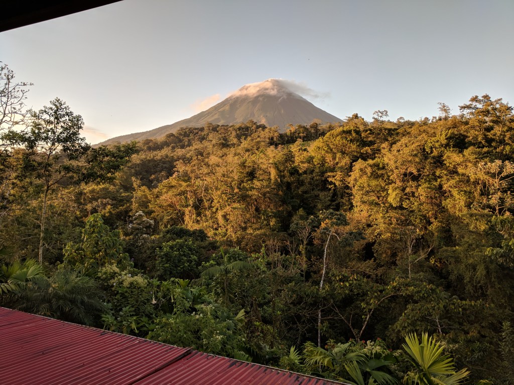 Το κωνικού σχήματος ηφαίστειο Arenal το οποίο βρίσκεται σε φάση ‘ξεκούρασης’ επί του παρόντος δεσπόζει στον ορίζοντα. Πέρα από τις αιωνόβιες θέες που αυτό προσφέρει, πλαισιώνεται από την μεγαλύτερη λίμνη της χώρας με το ίδιο όνομα. Σε μικρή απόσταση βρίσκεται επίσης ο καταρράκτης Rio Fortuna (στα πολύ δροσερά νερά του οποίου μπορεί κανείς να κολυμπήσει) και ένας επισκέψιμος εθνικός δρυμός γεμάτος αερογέφυρες. Το ηφαίστειο δεν είναι προσβάσιμο, δεν προσφέρονται πεζοπορίες γύρω από τον κρατήρα του ή κάτι αντίστοιχο. Περισσότερο λειτουργεί σαν ένας κοιμισμένος γίγαντας, ένα ορόσημο που προκαλεί δέος και σεβασμό στα στοιχεία της φύσης και που σου υπενθυμίζει ότι βρίσκεσαι στους τροπικούς.