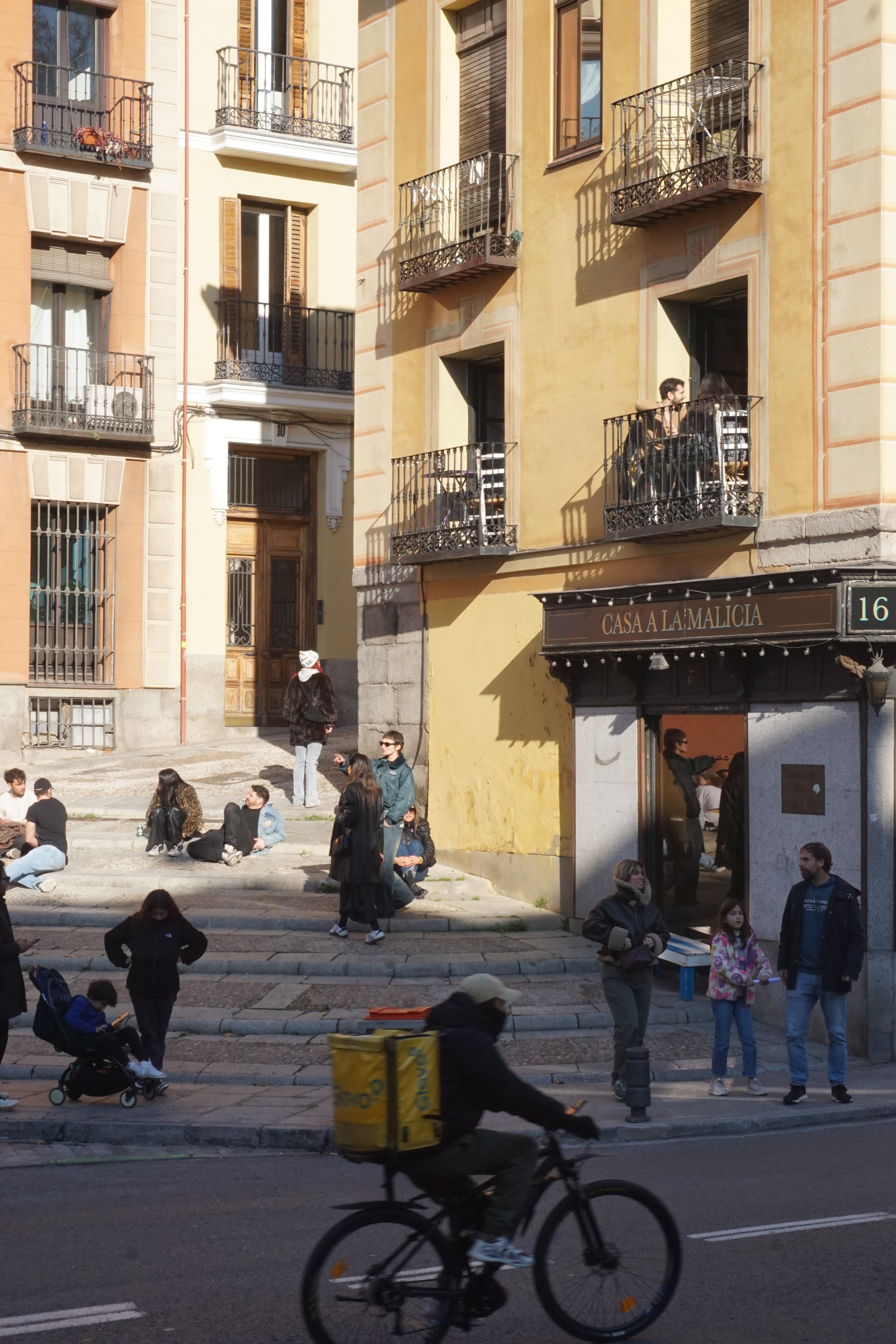 Η Μαδρίτη γενικά είναι ένας προορισμός που απαιτεί το χρόνο του επισκέπτη για να μπορέσει να εκτιμήσει τις αρετές της. Διήμερα και τα λεγόμενα «city break» δεν αρκούν για ένα τέτοιο μέρος που μπορεί να μην θαμπώνει με το καλημέρα, μα σίγουρα σε κερδίζει μόλις την ζήσεις για λίγο περισσότερο χρόνο. Εξερευνόντας την γειτονιά προς γειτονιά ανακαλύπτει κανείς μία μεσογειακή πρωτεύουσα με φαινομενικά λίγο άγχος και περίσσεια ανέμελια. Αυτό είναι ιδιαίτερα αισθητό στο πως οι ισπανοί αντιμετωπίζουν την όλη έξοδο τους για φαγητό, ποτό και διασκέδαση. Αυτό το κλασσικό «vamos pa fiesta!!!» με τα άπειρα θαυμαστικά μοιάζει με καρικατούρα όταν το πρωτοακούς από κάποιο γνωστό σου όμως καλά θα κάνεις να ακολουθήσεις. Το που βρίσκει αυτός ο κόσμος την όρεξη για να βγει να πιει ή να γευματίσει οποιαδήποτε στιγμή της ημέρας οποιαδήποτε ώρα όσο τρελή και να είναι έτσι ώστε να σου μιλήσει έξω καρδιά για τα πράγματα που τον απασχολούν, τις χαρές και τις αγωνίες του, ένας θεός το ξέρει. ‘Ολη η περιοχή νότια της la latina, και κοντά στην plaza de Humiladero είναι γεμμάτη ανακαινισμένα ιστορικά/νεοκλασσικά που φιλοξενούν μπαρ και εστιατόρια με υπαίθρια τραπεζοκαθίσματα μιας και ο καλός καιρός που επικρατεί το μεγαλύτερο μέρος του έτος το ευνοεί. Γενικά η πόλη είναι γεμμάτη με εκτενείς πεζοδρομημένες περιοχές και συχνά δαιδαλώση μονοπάτια γεμμάτα με μικρές εκπλήξεις, ιδιαίτερα στην la latina και malasana.