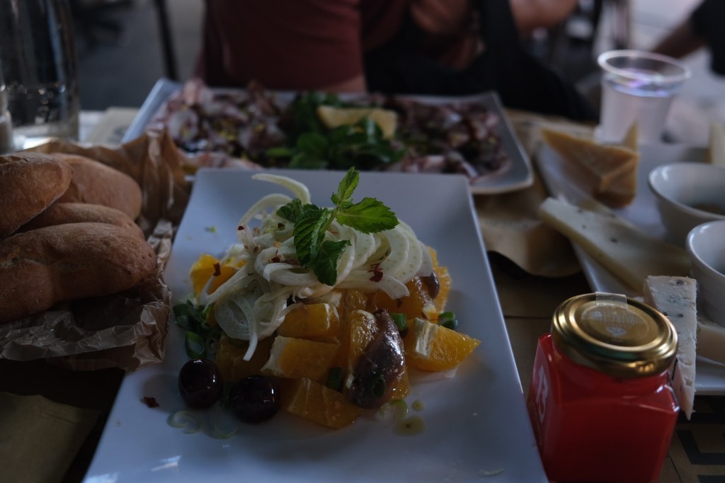 Αποφέυγουμε να δειπνήσουμε στα διεθνούς ύφους εστιατόρια («english breakfast!»,»sushi!!» κλπ κλπ) του San Vito De Lο Capo και επίλεγουμε ένα «αγροτουριστικό» εστιατόριο, λίγα χιλιόμετρα από το ξενοδοχείο μας το οποίο βρίσκεται σε μία κάποια σεβαστή απόσταση από το τουριστικό θέρετρο. Το ονομα του ήταν agroturismo la valle dei tramonti.