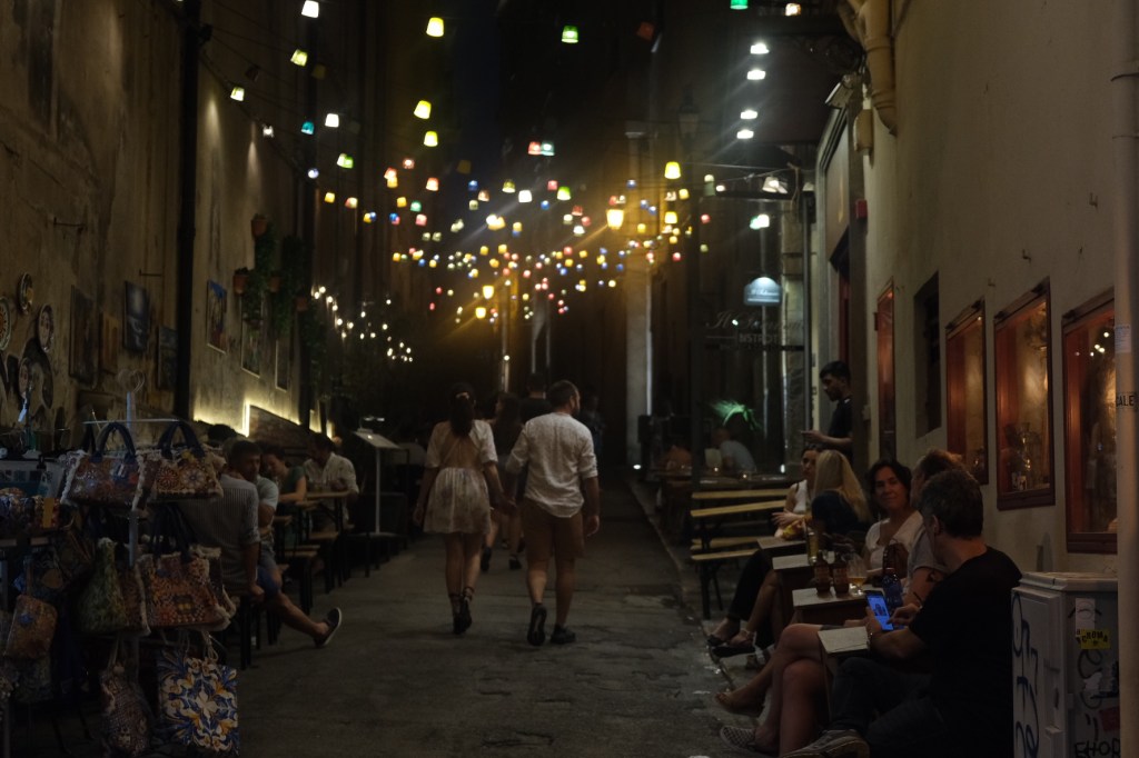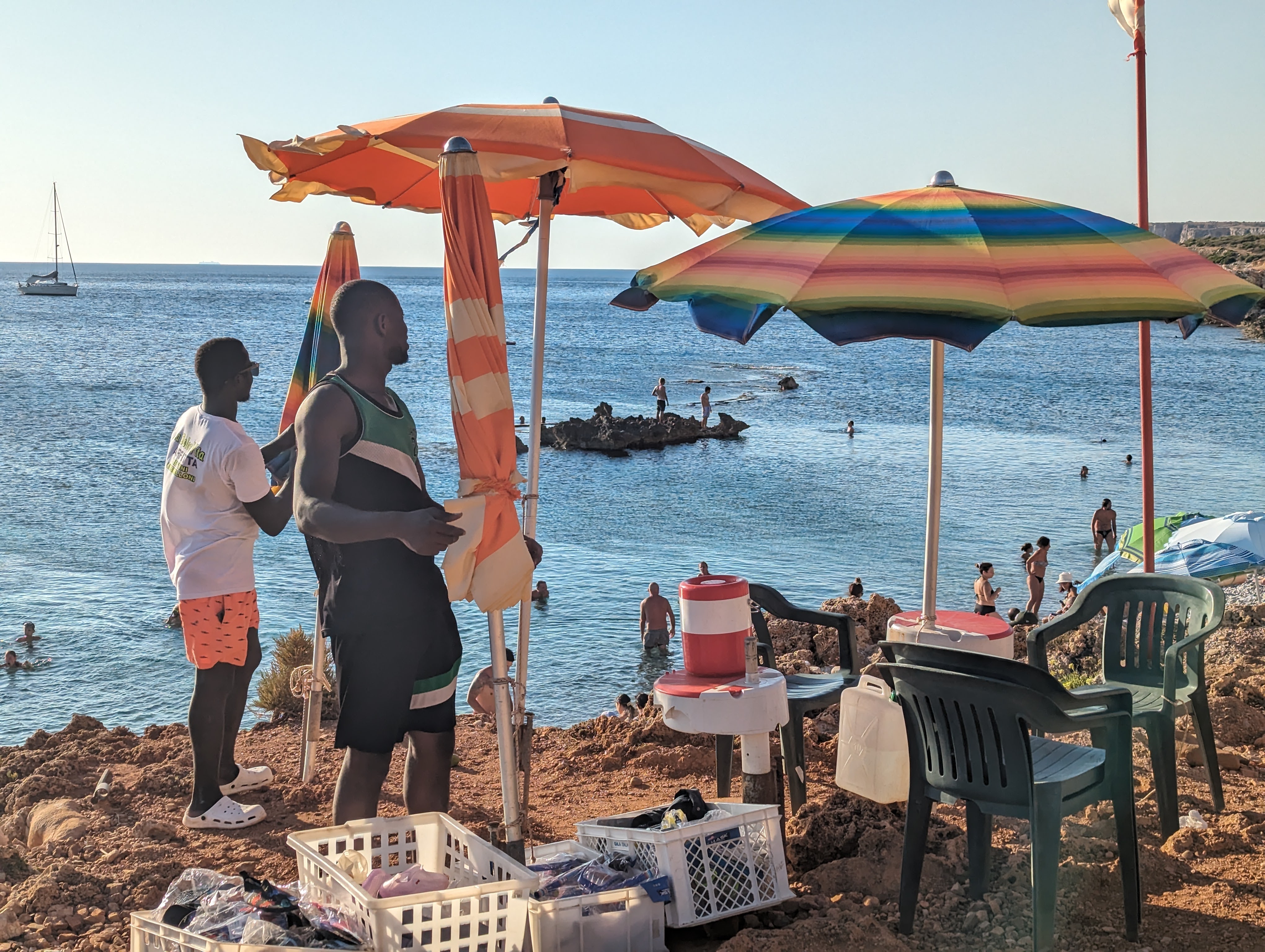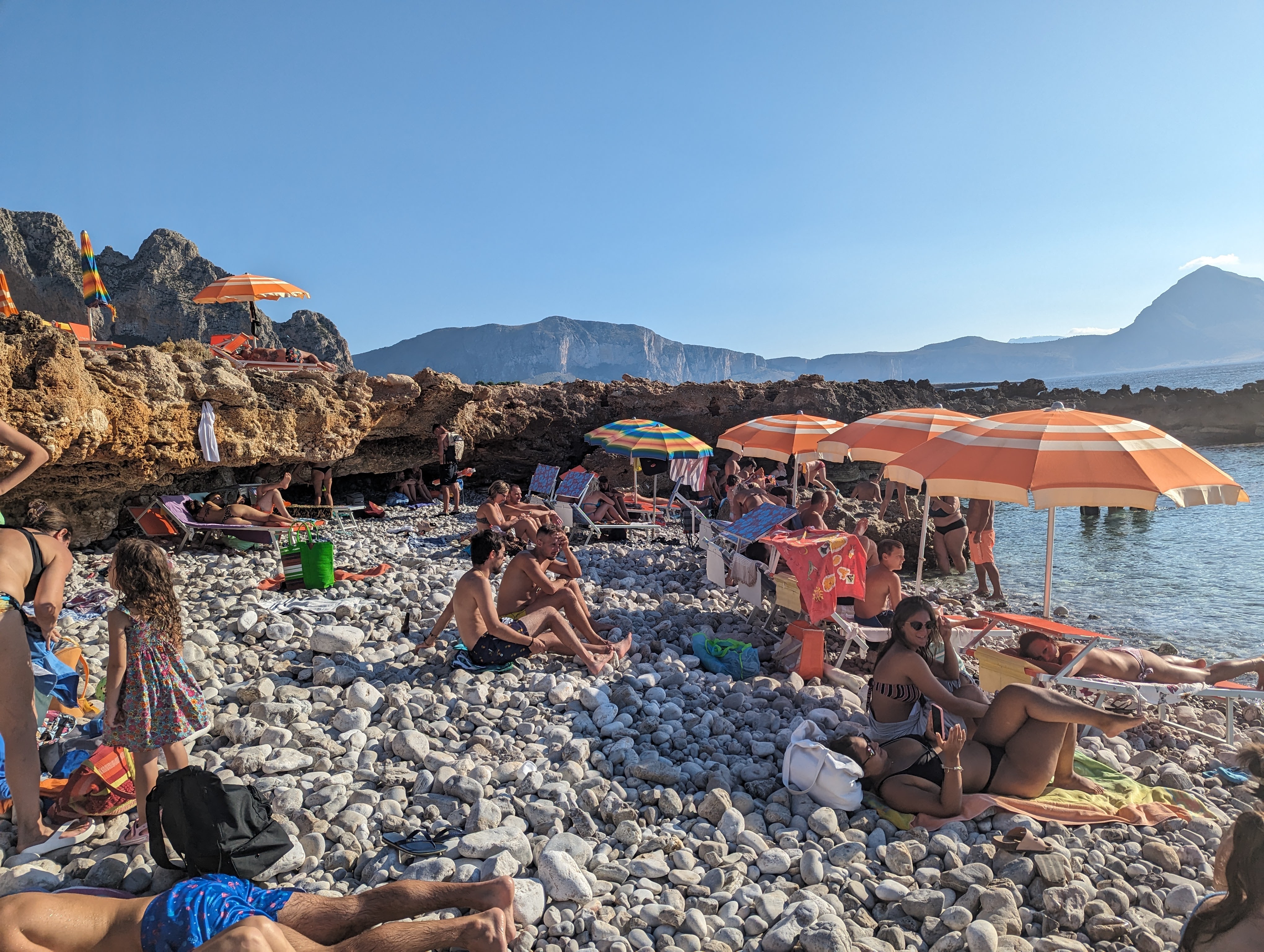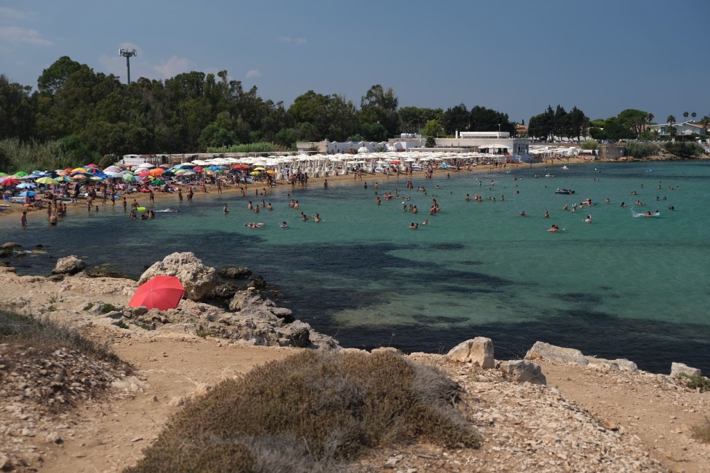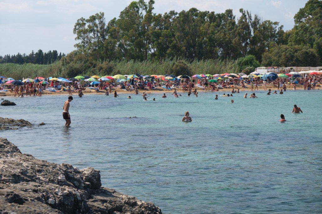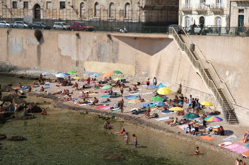 Πέραν αυτού καταφέραμε και διαφύγαμε ένα απόγευμα σε μία κοντινή παραλία και συγκεκριμένα στην Spiaggia dell’Arenella, λίγα χιλιόμετρα νότια του airbnb μας που λόγω ακρίβειας διαλέξαμε να είναι εκτός του ιστού της πόλης. Ήταν ένας συμπαθητικός αιγιαλός με δροσερά υπόγεια ρεύματα και αναμενόμενα πολυσύχναστος (παρότι καθημερινή), φαντάζομαι λόγω του καύσωνα που βίωνε όλη η Μεσόγειος το περασμένο καλοκαίρι. Ελάχιστοι πάντως αυτοί που επιλέξανε τις ξαπλώστρες για ενοικίαση που φανερώνει ότι οι λουόμενοι είναι στη συντριπτική τους πλειοψηφία ντόπιοι που δεν δέχονται να υποβάλλονται σε τέτοια έξοδα σε επαναλαμβανόμενη βάση απλά και μόνο για να κάνουν τα μπάνια τους. Ένα κίνημα της πετσέτας θα ήταν προφανώς καλοδεχούμενο και εδώ.