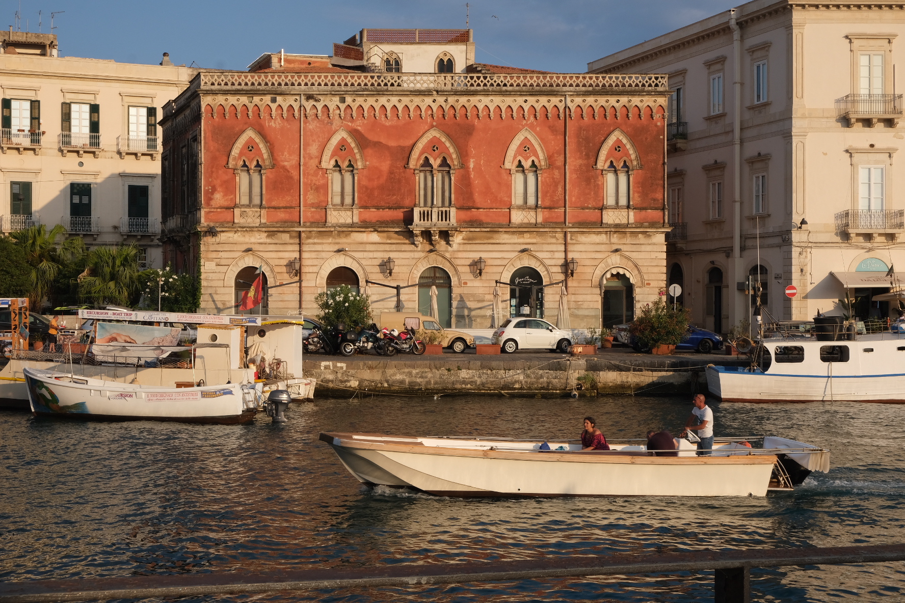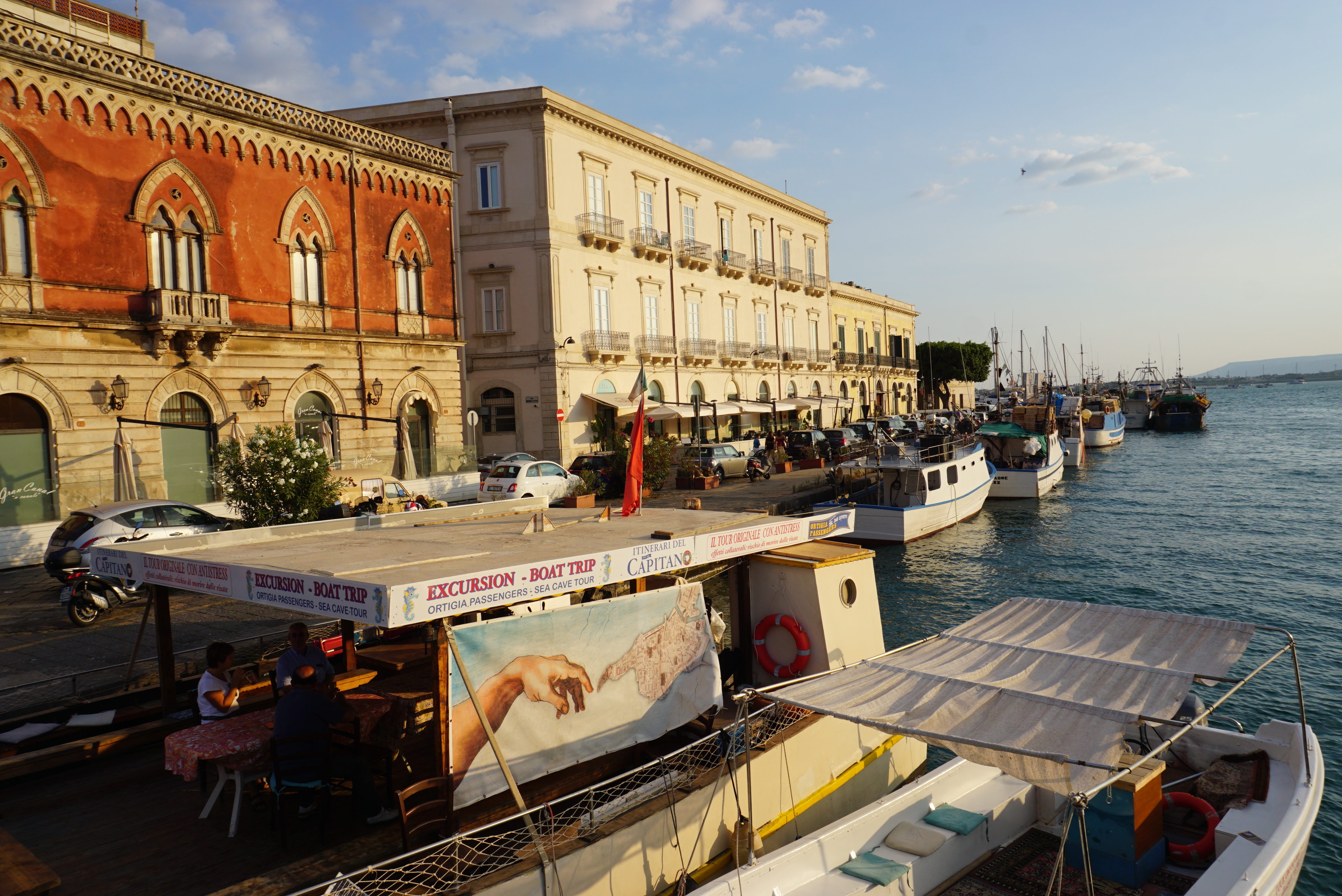 Πρώτη μας στάση οι Συρακούσες, μία πόλη κόσμημα και ίσως και το highlight όλου του ταξιδιού. Το ιστορικό κέντρο της, η Ortigia καταπλήσει με την ομορφιά της τους ανθρώπους που σουλατσάρουν στα γραφικά στενά της. Πρόκειται για έναν αυτοτελή οικισμό, διατηρητέο στην ολότητα του και αποτελούμενο από ιστορικά κτίρια, πλακόστρωτα δρομάκια αλλά και μεγαλειώδη διοικητικά κτίρια, εκκλησίες και πλατείες. Οι περιορισμοί εισόδου στους οδηγούς βοηθούνε στην διατήρηση μίας κάποιας ηρεμίας τουλάχιστον τις πρώτες πρωινές ώρες. Υπάρχει και ένα μικρό κομμάτι ακτής που περισσότερο λειτουργεί ως δικαιολογία για μία γρήγορη βουτιά εν μέσω καύσωνα παρά ως οργανωμένη πλαζ.