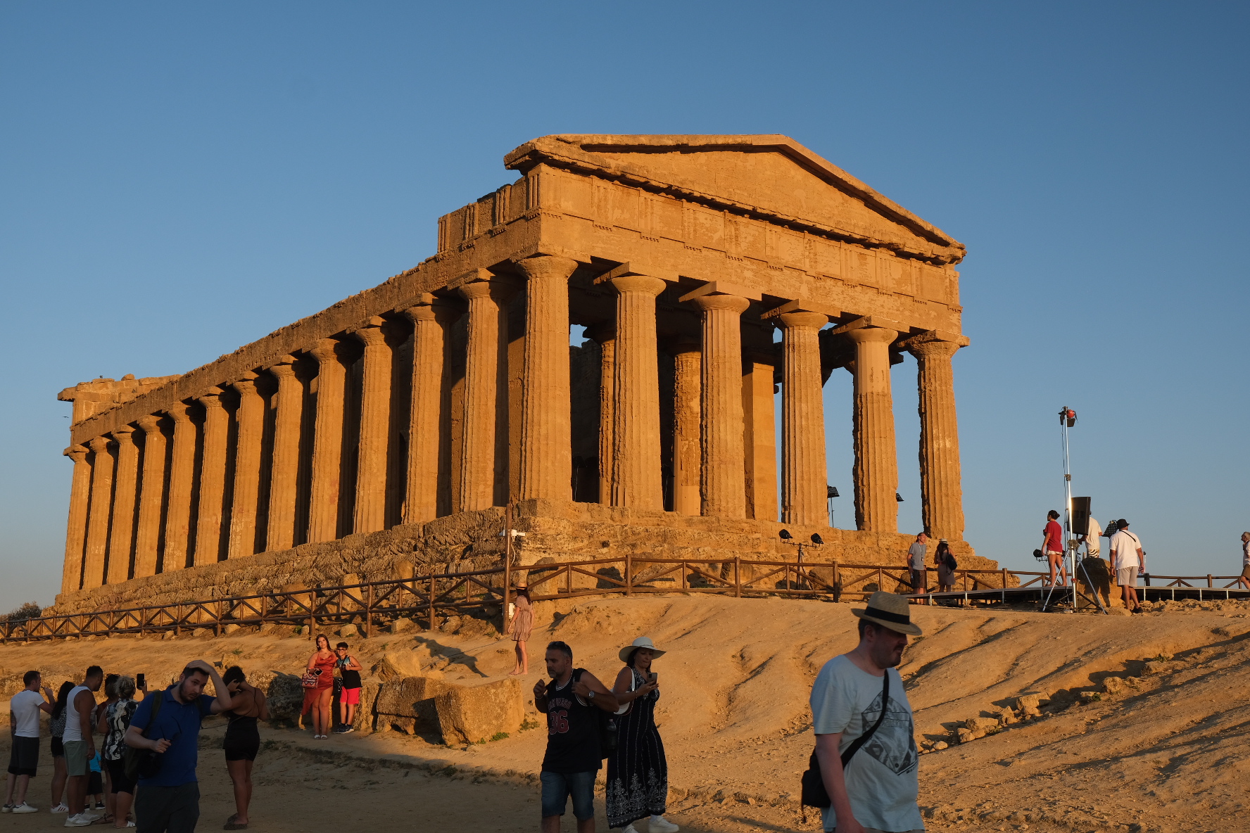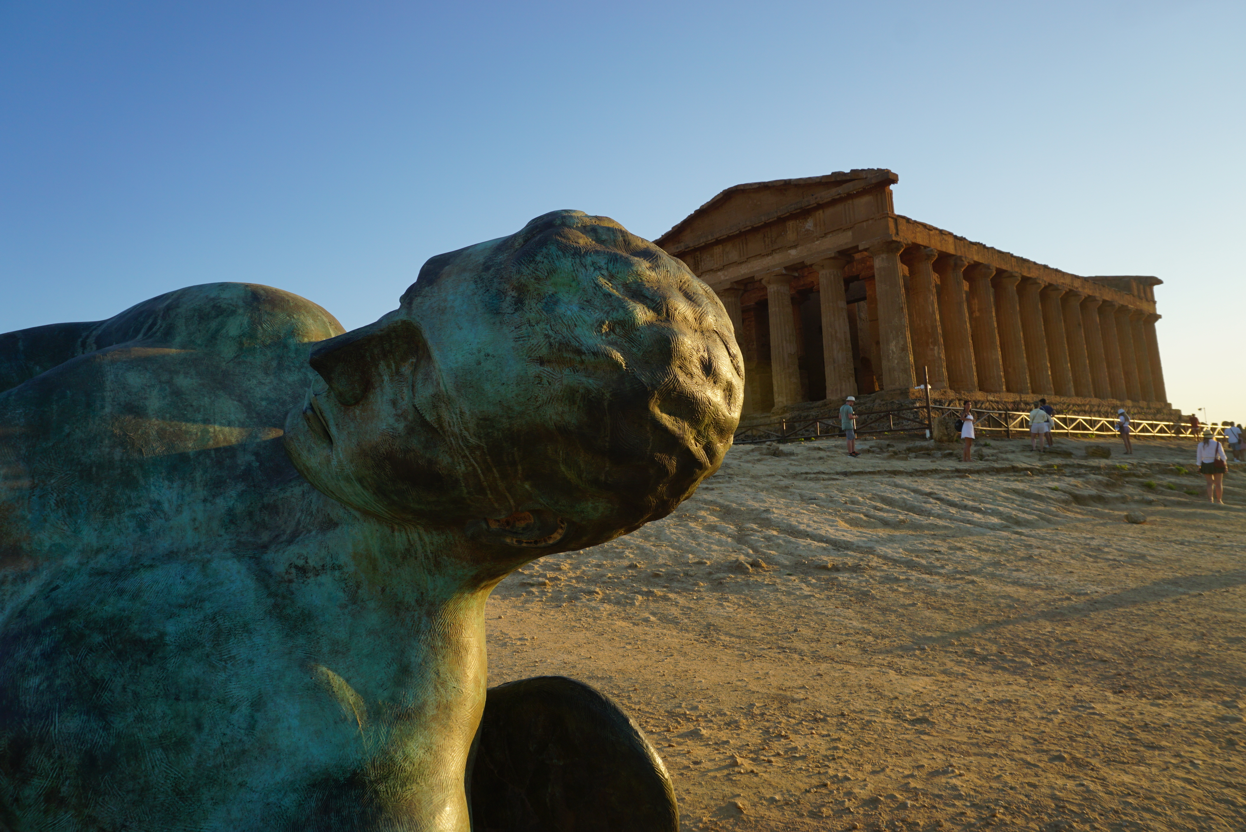 Η παντελής απουσία οργάνωσης πάντως στο περίφημο «Valley of the temples» αποθαρρύνει, εκνευρίζει και αποτελεί μία κάκιστη αρχή στην ξενάγηση μας εκεί. Κλείνουμε εισιτήρια online και βρίσκουμε εν τέλει μία θέση στο προχειροφτιαγμένο και μη ασφαλτοδρομένο πάρκινγκ δίπλα από τον αρχαιολογικό χώρο. Προ της κύριας πύλης εισόδου συμβαίνει το αδιαχώρητο. Υπάρχει μόνον μία ουρά που μετά τον πρώτο έλεγχο αποσκευών χωρίζεται σε δύο ( για κατόχους και μη online εισιτηρίων) για να …ξαναγίνει εν τέλει μία για όλους πριν την δεύτερη τελική πύλη. Εκεί οι υπάλληλοι χωρίς πολλές γνώσεις ξένων γλωσσών και μάλλον αδιάφοροι στο δράμα των τουριστών κάθε άλλο παρά βοηθούνε την κατάσταση. Εντός του αρχαιολογικού χώρου υπάρχει έντονος συνωστισμός. Η λύση σε αυτο το πρόβλημα θα ήταν περιορισμένος αριθμός εισητηρίων ανά ώρα μετά από κράτηση. Αυτό φαντάζομαι θα εδραιωθεί στο κοντινό μέλλον και εδώ όπως και στα περισσότερα μνημεία υψηλού ενδιαφέροντος ανα το κόσμο ( βλέπε Παρθενώνας ). Η επιλογή της ώρας της επίσκεψης σας έχει και αυτή τη βαρύτητα της. Καλύτερα να πάτε με τη δύση του ήλιου όπου θα επικρατεί λιγότερη ζέστη και θα χρωματίσουν το τοπιο οι όμορφες ροζ αποχρώσεις του ουρανόυ.