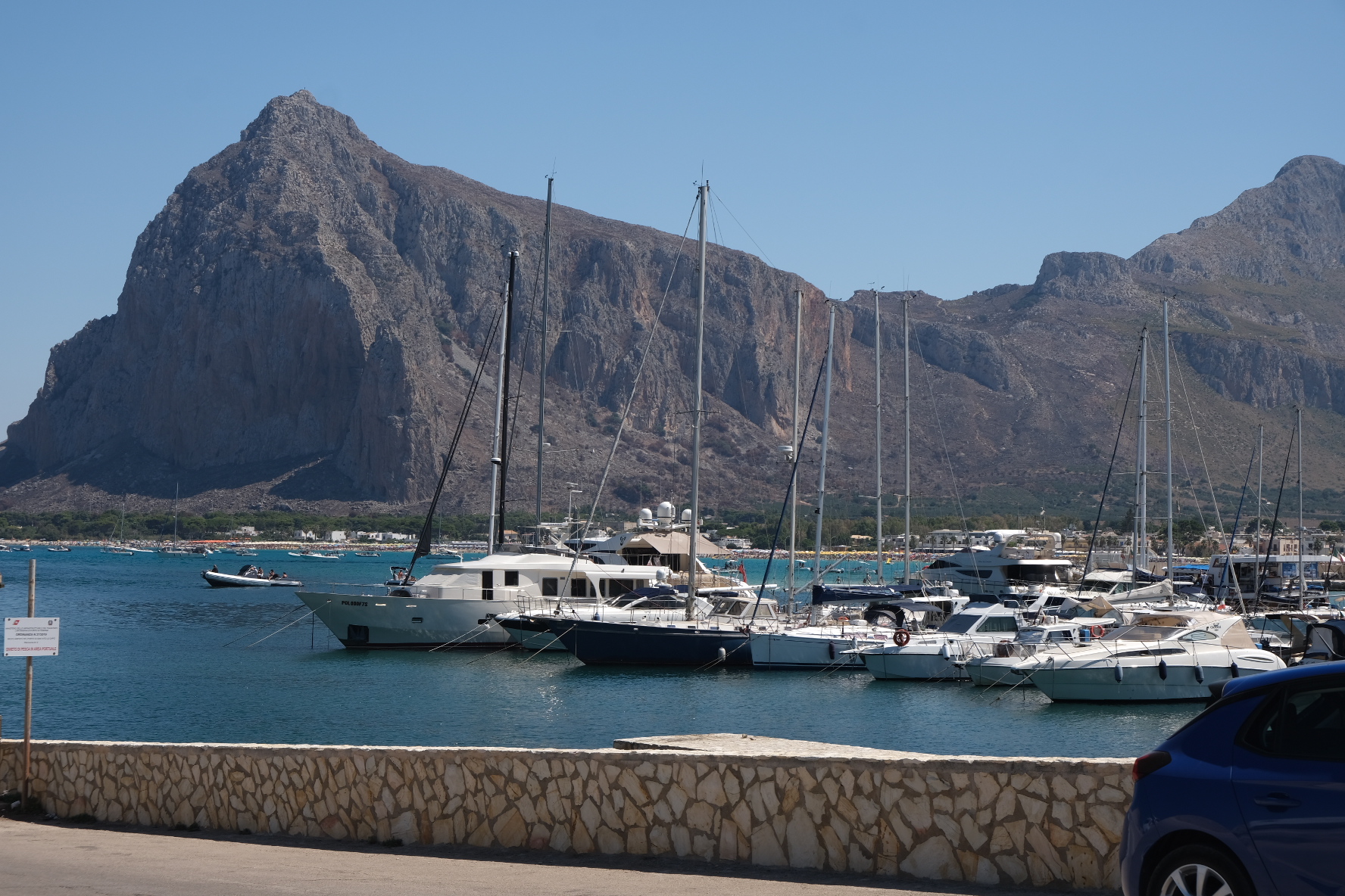 Επόμενος σταθμός μας το San Vito de lo Capo: Ένας τεράστιος βράχος δεσπόζει σε μία αμμουδερή και (κουράστηκα να το λέω) παραγεμμάτη από λουόμενους παραλία. Η πόλη, ρημοτομημένη σαν την μονοπολη, μοιάζει να χτίστηκε χθές καθαρά και μόνο για τουριστικούς σκοπούς.