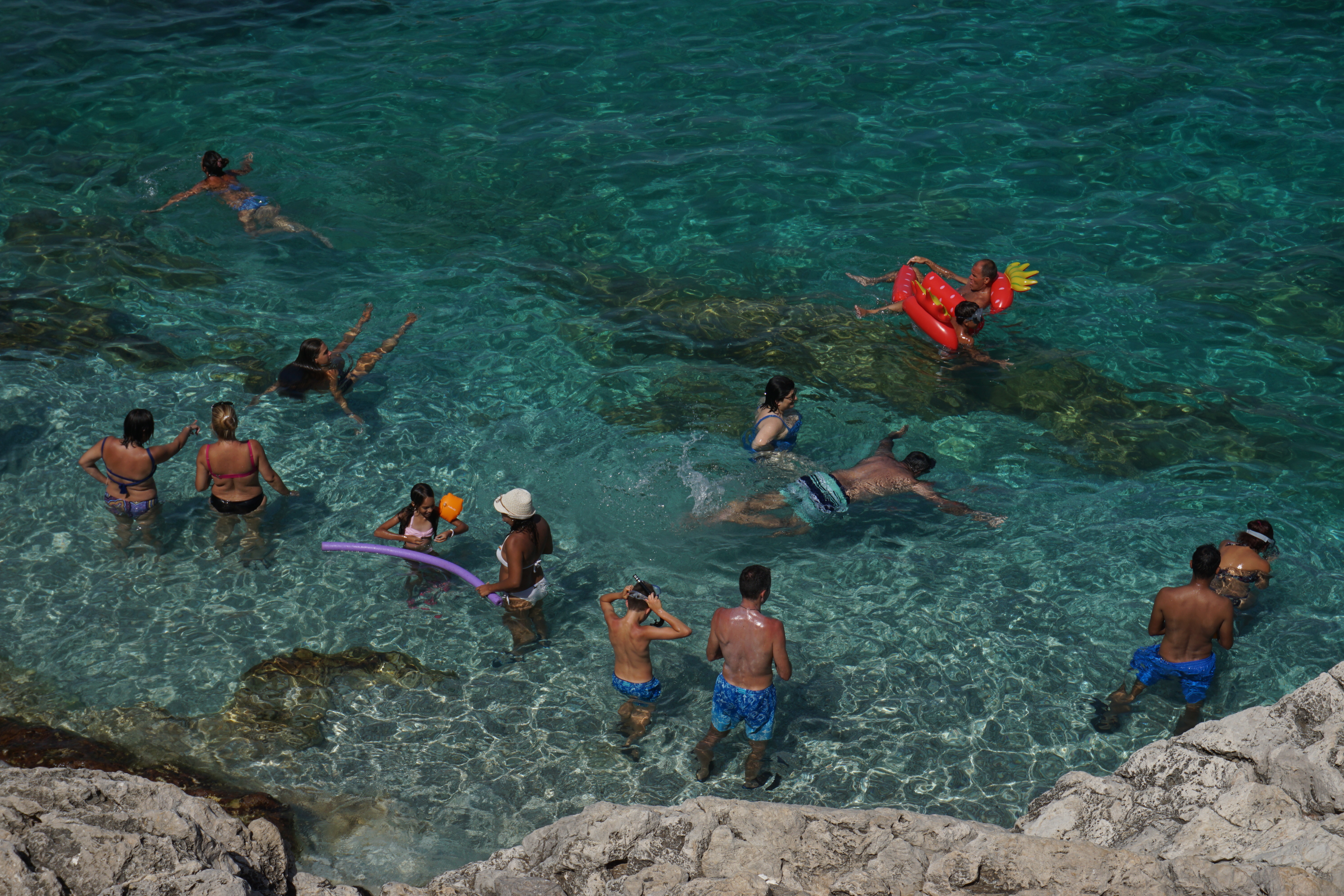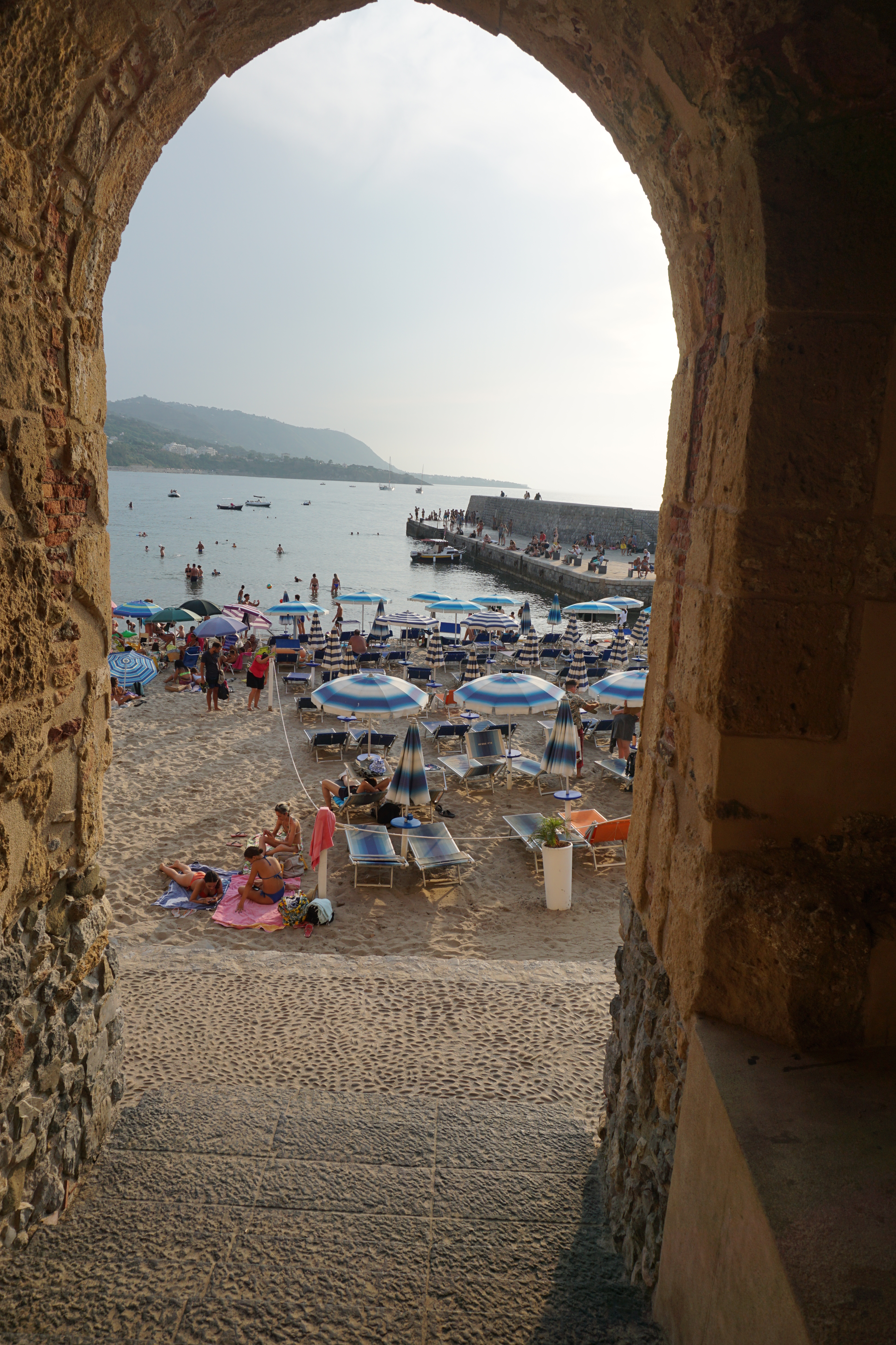 Να πω εδώ ότι η κράτηση είναι απαραίτητη. Εμείς δεν το γνωρίζαμε και δεν βρήκαμε διαθέσιμη ξαπλώστρα οπότε και πήγαμε σε διπλανή αποβάθρα .Υποτίθεται ότι κόβεις εισητήριο για να δεις το μισογκρεμισμένο κάστρο Torre Doria αλλά κανείς δεν πηγαίνει εκεί. Αντ αυτού οι πάντες στριμωχτήκαμε σε μία μικρή τσιμεντένα αποβάθρα και κολυμπήσαμε ως στην La Tonnara di Scopelo. Ωραία νερά και γαλήνια η θέα αν και η δυνατή μουσική από τις θαλαμηγούς που είχαν αγκυροβολήσει εκεί κοντά μας χάλασε την διάθεση και την όλη αρμονία της στιγμής.