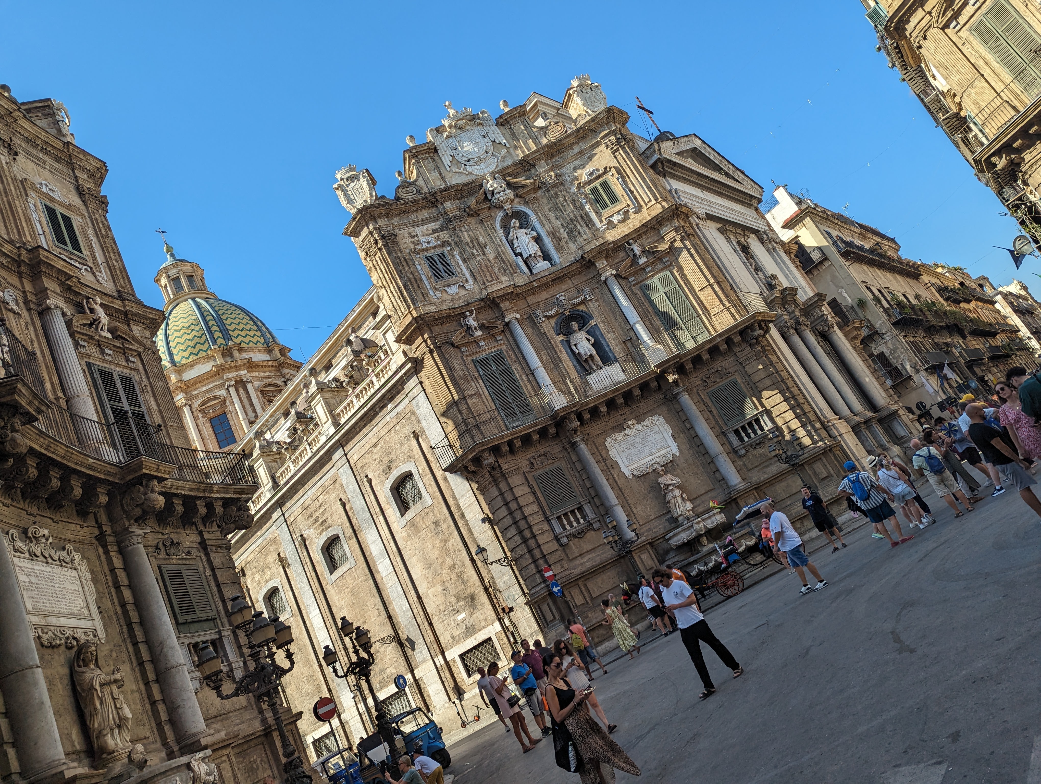 Palermo: Η πρωτεύουσα του νησιού αποτελεί και έναν χαρακτηριστικό καθρέφτη των αντιθέσεων του: από την μία τα πολυάριθμα μνημεία παγκόσμειας κληρονομιάς της Unesco συγκεντρωμένα στο ιστορικό κέντρο (Θέατρο Μάσιμο Βιτόριο Εμανουέλε, Quattro Cuanti , ο καθεδρικός ναός της Ρωμαιο-Καθολικής Αρχιεπισκοπής του Παλέρμο) και από την άλλη τα υποβαθμισμένα προάστια της, τα πολλά σκουπίδια και οι έντονες μυρωδιές (όχι ευχάριστες) σε μεγάλο τμήμα της. Όμολογώ ότι πριν οργανώσουμε αυτές τις διακοπές ούτε γνώριζα που ακριβώς πέφτει αυτή η πόλη και η μόνη αναφορά που έιχα ήταν αυτο το «Πέφτει η Νύχτα Στο Παλέρμο», ένα whodunit παιχνίδι που παίζαμε οι παρέες σε ολιγοήμερες εκδρομές στο πανεπιστήμειο και που η έμπνευση πίσω από τον τίτλο φαντάζομαι να έχει να κάνει με την δράση εγκληματικων δράσεων εκεί κατά το παρελθόν.
