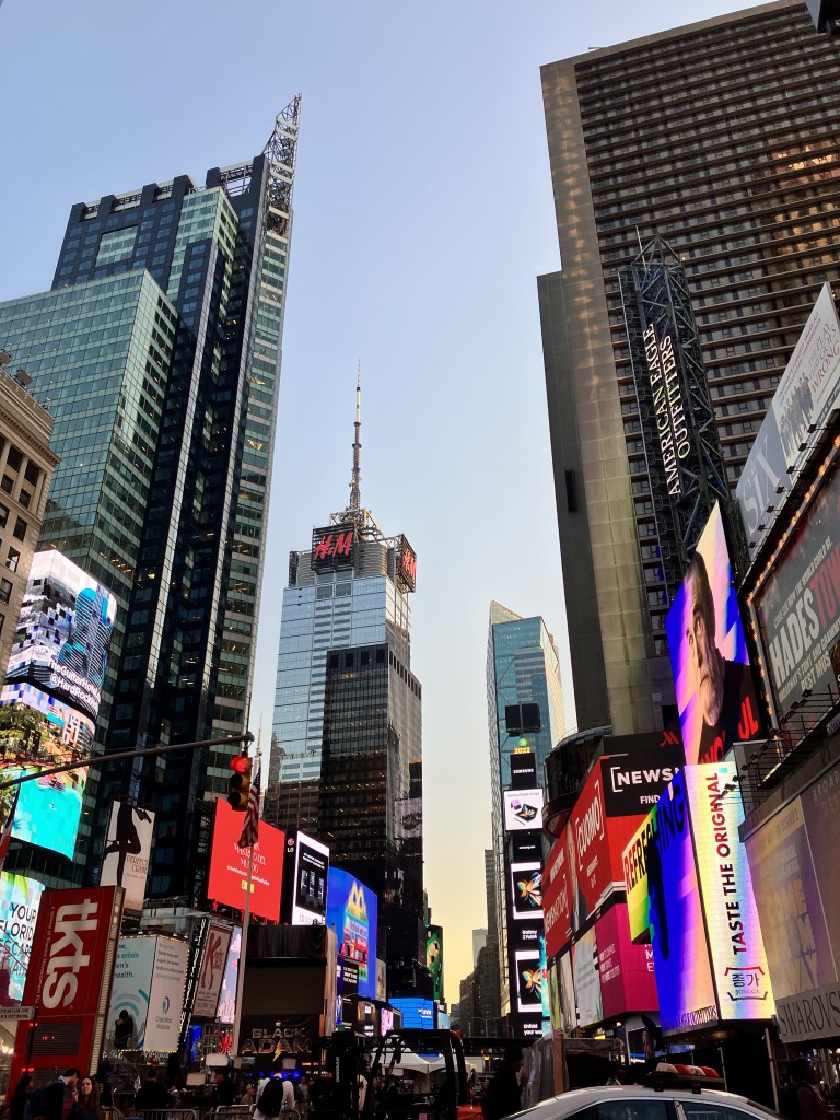Times square: Φωτεινή, θορυβώδης και μόνιμα μες την πολυκοσμία όπως αντίστοιχα και η piccadily circus στο Λονδίνο, η συγκεκριμένη πλατεία εντυπωσιάζει την πρώτη φορά που θα την επισκεφτείς αλλα είναι δύσκολο να παραμείνεις εκει για πολύ ώρα. Οι ίδιοι οι Νεουρκέζοι την αποφεύγουν όσο μπορούν. Επιχειρήσεις προς κάθε κατεύθυνση, πλήθος κόσμου, στούντιο που αναμεταδίδουν live πρωϊνές εκπομπές, τεράστιες όθόνες και billboards με διαφημίσεις όχι μόνο για ταινίες και τηλεοπτικά shows αλλά παραδόξως και για γιατρούς, δικηγόρους και άλλους ιδιωτικούς επαγγελματίες με κατασπρισμένη οδοντοστοιχία, λες και κατεβαίνουν υποψήφιοι δήμαρχοι (η εικόνα δεν είναι κάτι δευτερεύον για τέτοιου είδους επαγγέλματα, κατι που με τα ευρωπαϊκά δεδομένα μοιάζει λίγο επιφανειακό αν όχι και αστείο)