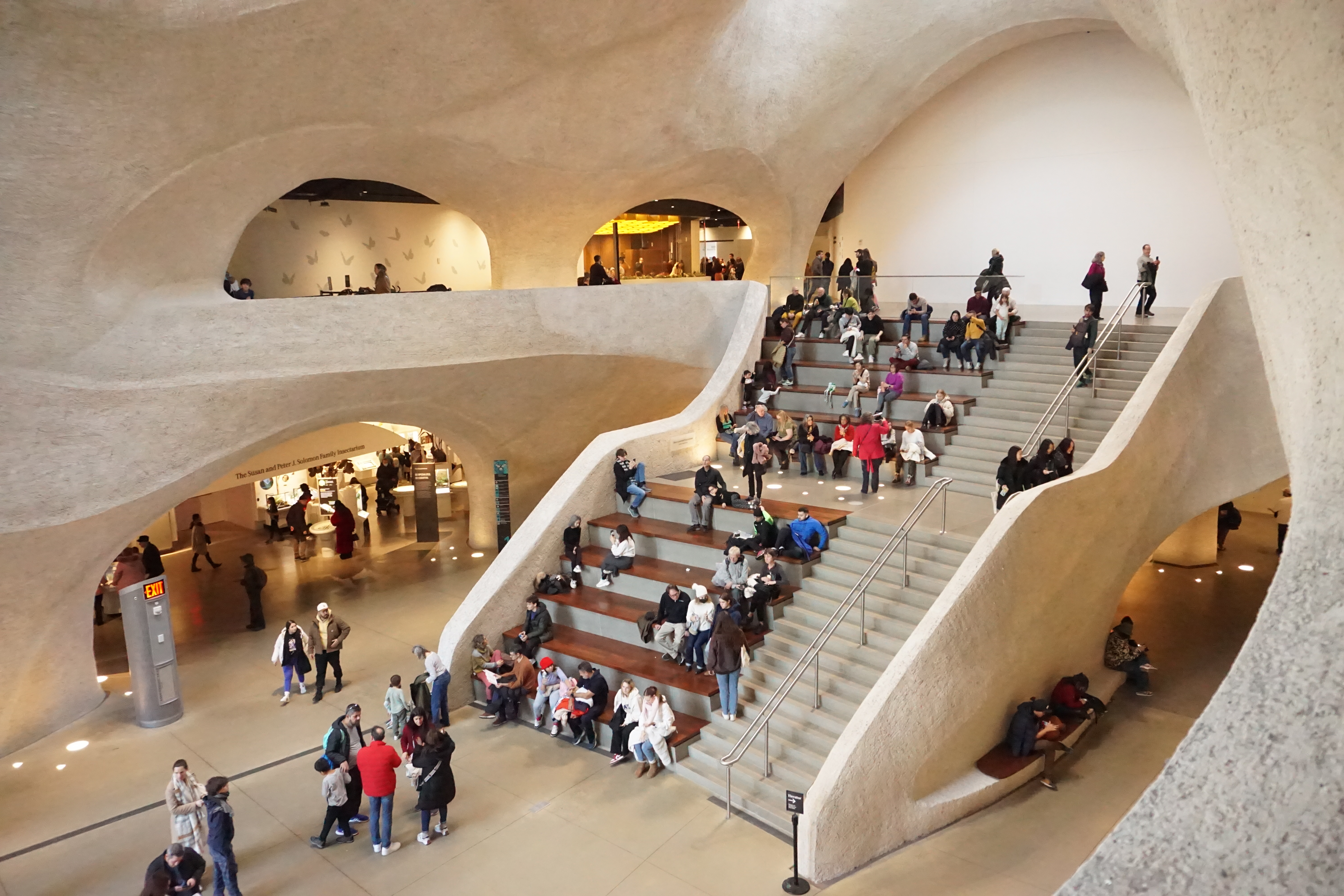 Μουσείο Guggenheim: Στο Upper east side και μία ανάσα κυριολεκτικά από το central park βρίσκεται αυτό το πολύ γνωστό μουσείο με το εντυπωσιακό κτίριο σε σχήμα κυλίνδρου. Ψάχνωντας το στιλ της αρχιτεκτονικής του, διαβάζω ότι επρόκειτο για «organic architecture». Όσοι έτυχε να δείτε την ταινία δράσης The International με τον Clive Owen, θα θυμάστε ότι εκεί εξελίσσεται μία πολύ καλογυρισμένη σκηνή καταδίωξης. Εντός του, το μουσείο είναι ενδιαφέρον μα ίσως θα σας φανεί μικρό και με λίγα εκθέματα να κρέμονται στους τοίχους των σπιράλ ορόφων του. Όπως σε κάθε μουσείο σύγχρονης τέχνης πάντως, υπάρχουν και εδώ κομμάτια που θα σε κάνουν να σταθείς και να χαζεύεις για ώρα, ακόμα και αν δεν αυτοχαρακτηρίζεσαι γνώστης του αντικειμένου.