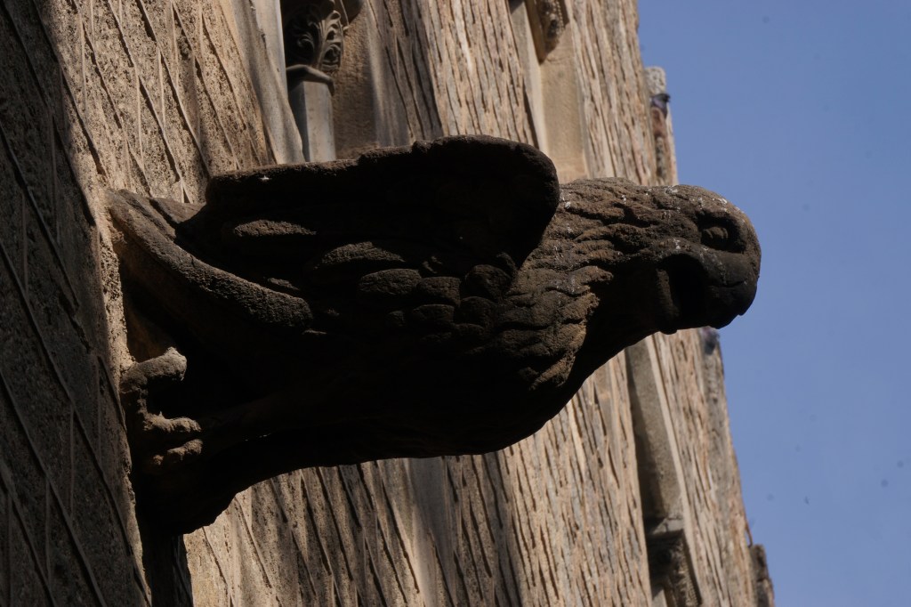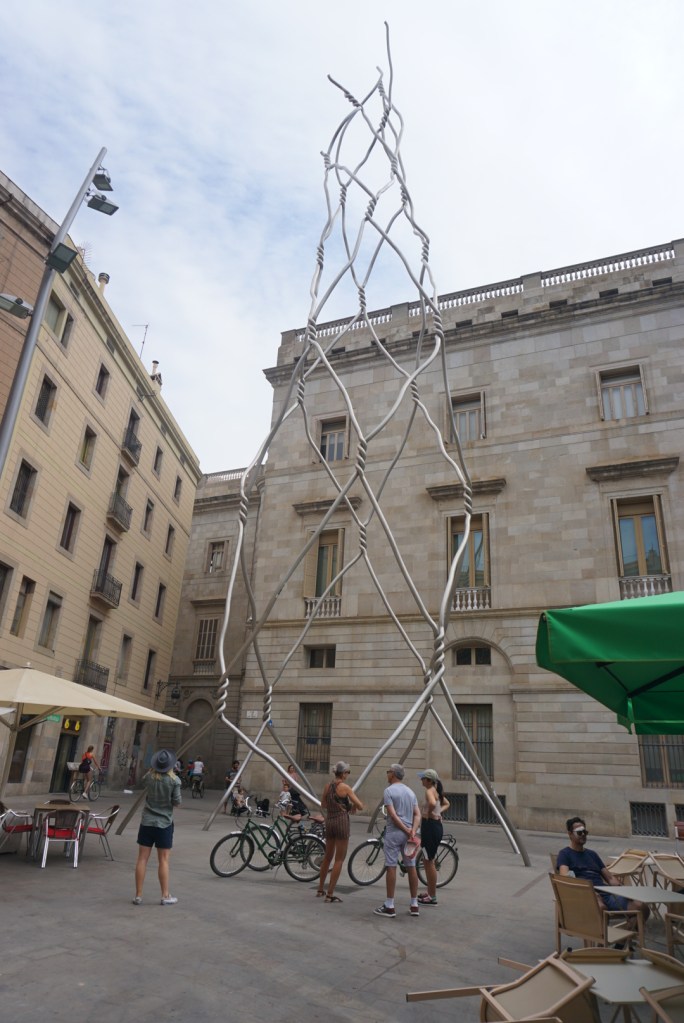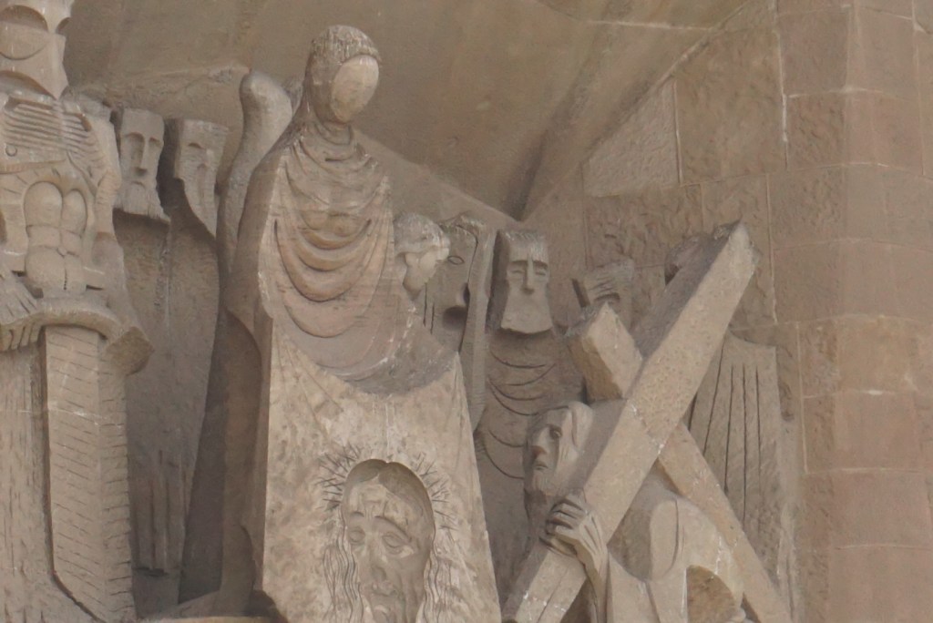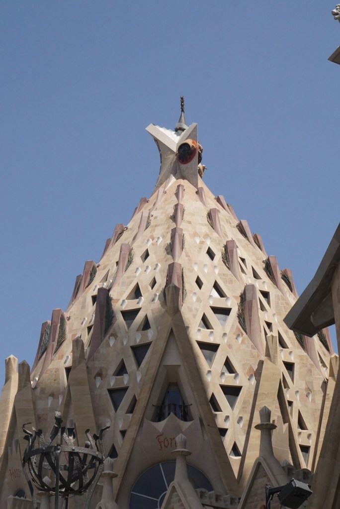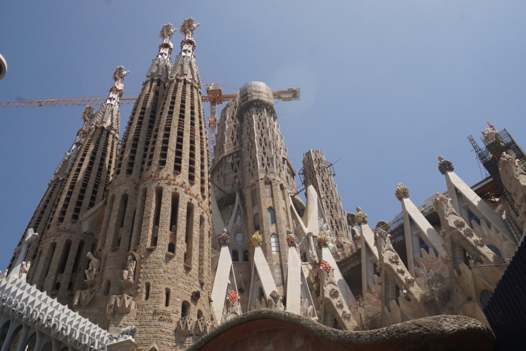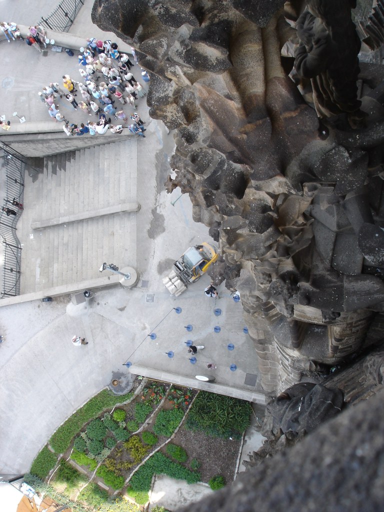 Σαγκράδα φαμίλια: Το σήμα κατατεθέν την Βαρκελώνης, αυτή η γωνιώδης επιβλητική εκκλησία ορθώνεται σε μικρή έκταση, απότομη με τέτοια καθετότητα σχεδόν σαν γκρεμός και μέχρι σήμερα αποτελεί έργο εν εξέλιξη. Το μακρινό 2005 στην πρώτη μας επίσκεψη θυμάμαι το εσωτερικό της να είναι κάτι πολύ ασαφές και ασχημάτιστο με εργοτάξια παντού, λευκούς σοβάδες και ελάχιστα για να κρατήσει ο επισκέπτης σαν ανάμνηση. Απορούσα φωναχτά τότε μα με πιο σκεπτικό μας χρεώσανε εισιτήριο. Ανεβήκαμε πολλά απότομα σκαλιά για να πάρουμε κάποιες μάλλον γενναίες φωτογραφίες με τις ψηφιακές μας φωτογραφικές ( τα κινητά ήταν…παλαιολιθικής τεχνολογίας και δεν είχαν κάμερες της προκοπής) μα πέραν αυτού λίγα πράγματα. Πρόσφατα μου είπανε ότι θα ολοκληρωθεί τελικά σε δύο χρόνια οπότε ίσως επιτέλους ήρθε η ώρα να κόψουμε ένα δεύτερο εισιτήριο. Να πω πάντως ότι είχα ξαφνιαστεί ευχάριστα με την μοντέρνας αισθητικής αναπαράσταση βιβλικών σκηνών στην είσοδο των Παθών στο εξωτερικό του ναού ( ένα μεταγενέστερο έργο/προσθήκη του γλύπτη Josep Maria Subirachs με τον Ιησού να κουβαλάει το σταυρό στην δεύτερη είσοδο ).