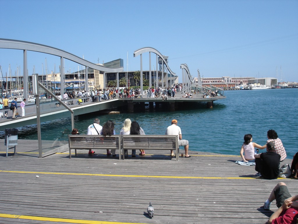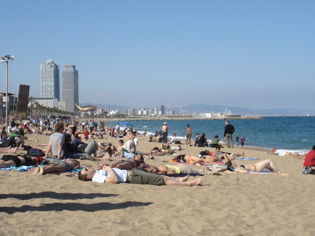 Συναντήσαμε καλοκαιρινό κλίμα και διάθεση και μία μικρή και διαχειρίσιμη πολιτεία που θυμίζει συχνά μία λιγότερο βαλκανική εκδοχή της Θεσσαλονίκης. Στη μνήμη μου μου έχει παραταύτα χαραχθεί η πολυκοσμία, η αγένεια των σερβιτόρων ( «πλήρωσε!» μόλις σου αφήνουν το ποτό ) αλλά και των υπαλλήλων στο youth hostel όπου μέναμε. Ήταν από τότε κορεσμένη από τους τουρίστες και οι ντόπιοι μοιάζανε κάπως μπουχτισμένοι. Οι πιο θετικές αναμνήσεις από αυτή τη πρώτη κρούση με την Βαρκελώνη ήταν όλες σχεδόν από την ηλιόλουστη Barceloneta ( αν και μέσα στο νερό δεν κολυμπούσανε παρά ελάχιστοι).