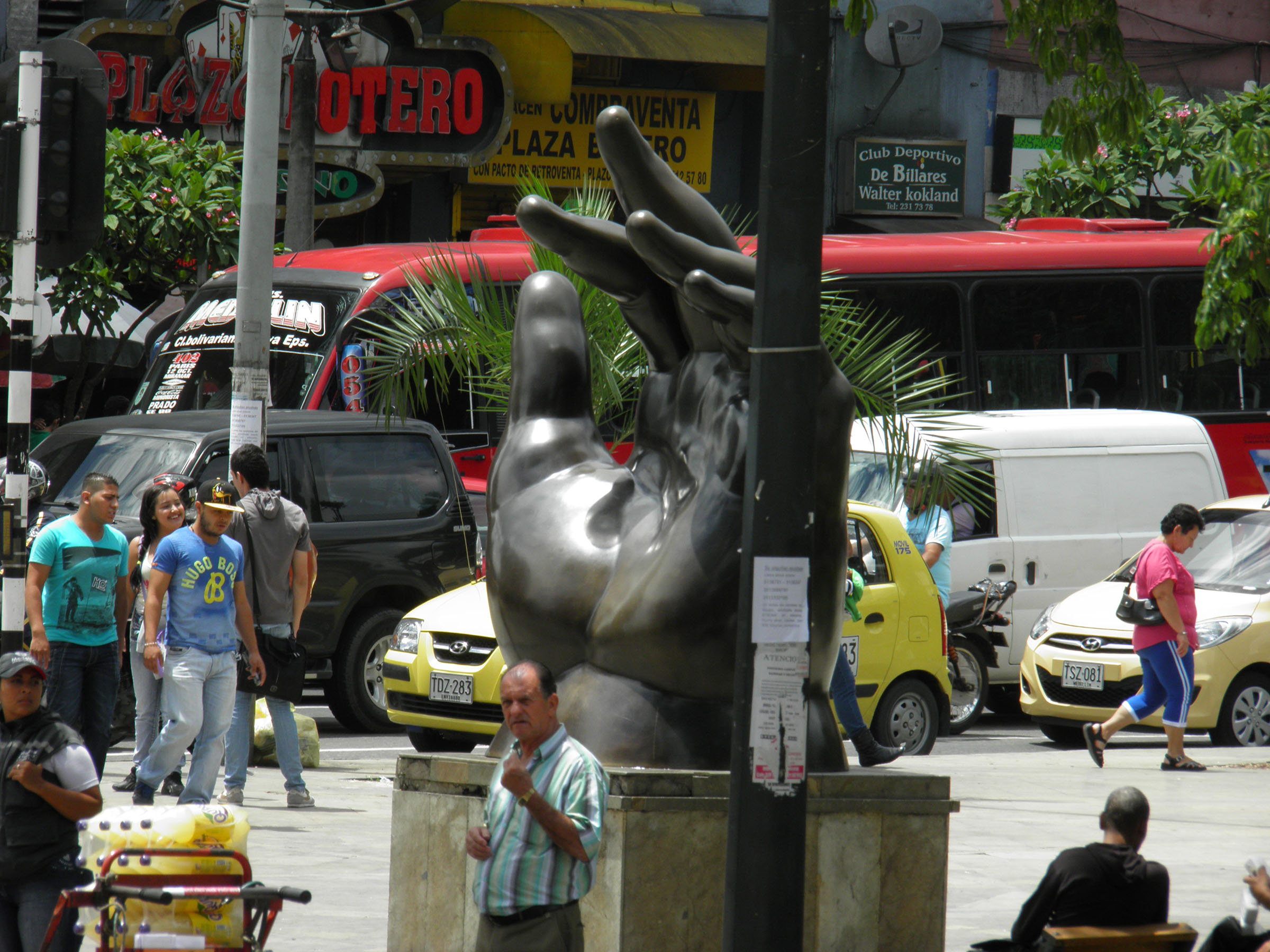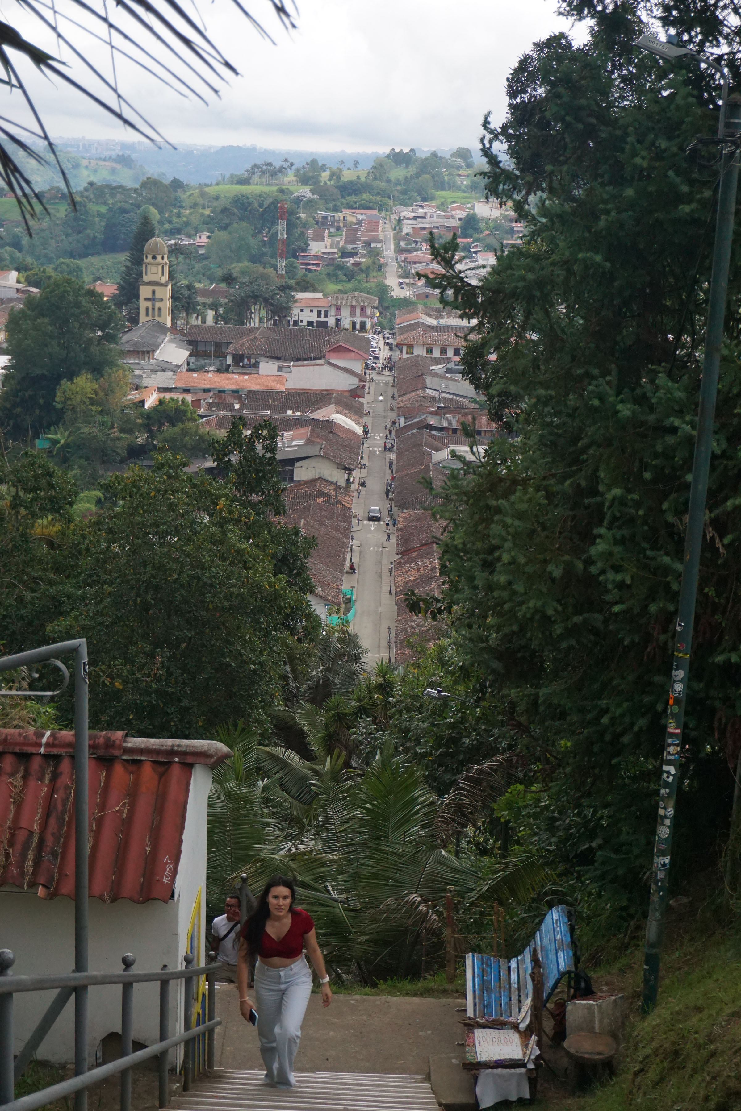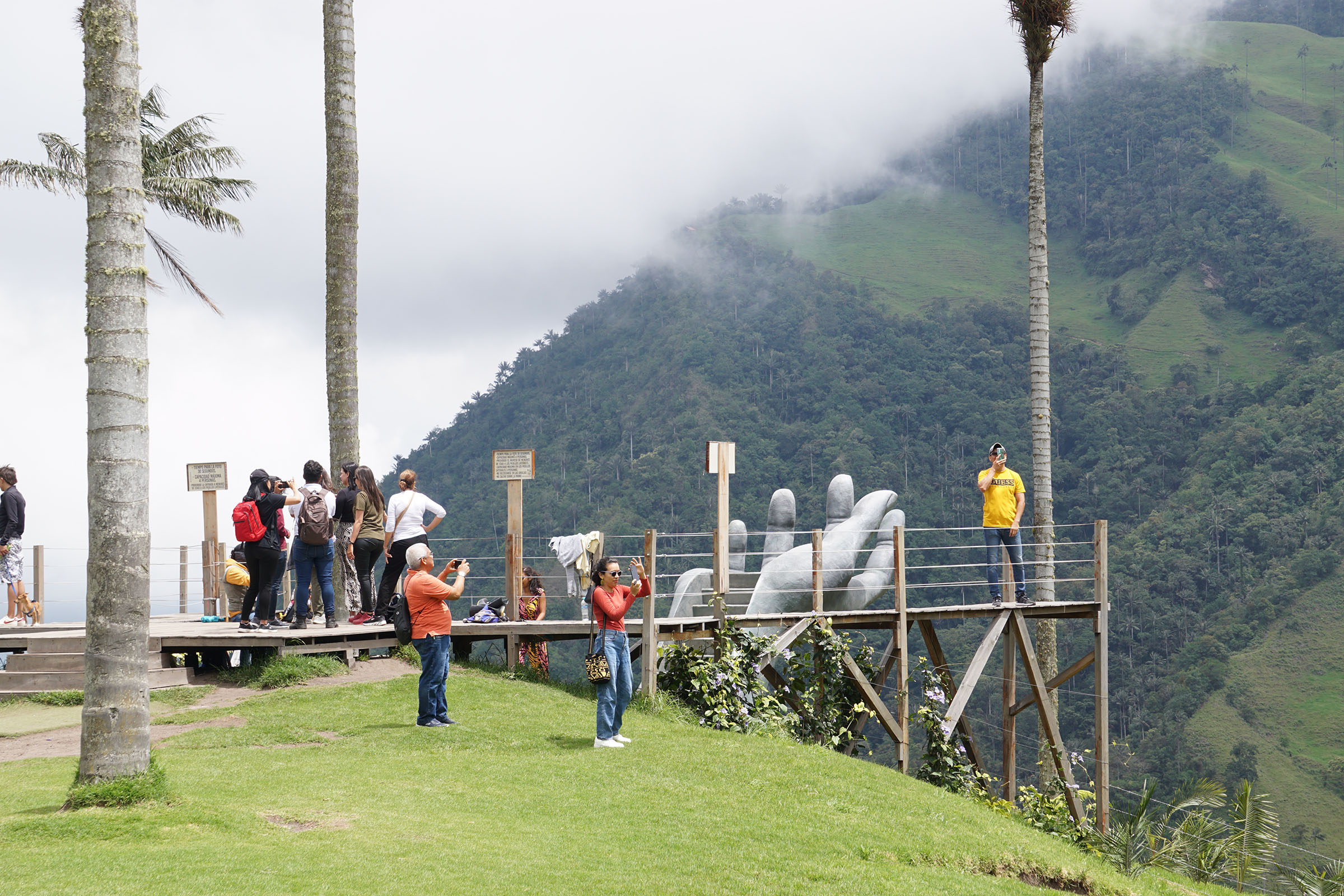 Η ίσως υπερβολική μετάλλαξη του να οφείλεται στην εγγύτητα του στο κύριο αξιοθέατο του Eje Cafetero, της Valle de Cocora. Επρόκειτο για τμήμα του εθνικού δρυμού Los Nevados με χαρακτηριστικό του τα εντυπωσιακά του φοινικόδεντρα ( Ceroxylon quindiuense ή wax palm – μετάφραση στα ελληνικά δυστυχώς δεν βρήκα ).Υπάρχει η δυνατότητα τετράωρης πεζοπορίας εντός του εθνικού πάρκου αν και οι περισσότεροι τουρίστες τα παρατάνε μόλις ανέβουνε μερικές εκατοντάδες μέτρα στο πρώτο λόφο με πανοραμική θέα. Εκεί παίρνουν μερικές φωτογραφίες σε μία πλατφόρμα σε σχήμα μαρμάρινου χεριού. Σχηματίζεται μία μικρή ουρά για την ιδανική selfie οπότε και αμέσως μετά η πλειοψηφία τους αρχίζει τη κάθοδο της στο σημείο εκκίνησης. Υπάρχουν διάφορα άλλα γιγάντια αγάλματα με προτομές Ινδιάνων ή τοπικά ζώα που μοιάζουν μάλλον παράταιρα και κακόγουστα. Χρειάζεται να έχεις σχετικά καλή φυσική κατάσταση αλλά και την κατάλληλη ενδυμασία για μία εκτενέστερη πεζοπορία ανηφορικά στο βουνό, κάτι που πολλοί από τους ανθρώπους που παρατήρησα γύρω μας το αγνόησαν παντελώς.