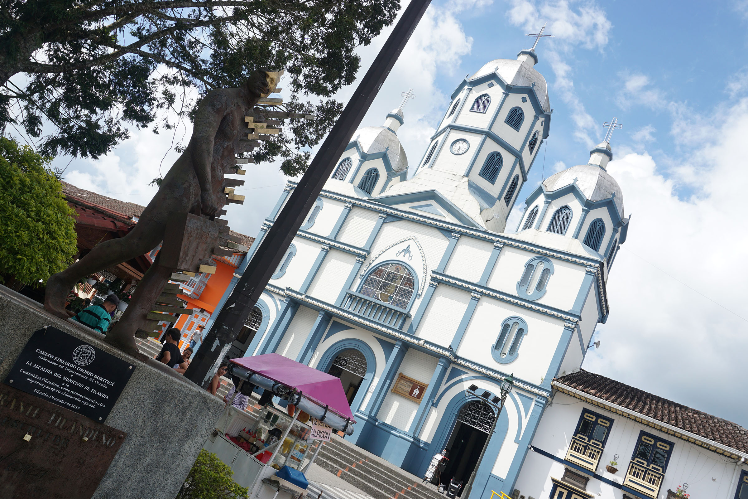 Salento Το Σαλέντο είναι ένα από τα πιο δημοφιλή χωριά της περιοχής Quindio, νότια της Αντιόχειας. Δεν περίμενα ποτέ ότι θα δω φαινόμενα υπερτουρισμού στην ενδοχώρα της Κολομβίας αλλά το Σαλέντο είναι ένα τέτοιο μάλλον απογοητευτικό παράδειγμα. Αν κάποτε υπήρξε εδώ μία κοινότητα τα μέλη της οποίας ακολουθούσαν τον όποιο δικό τους τρόπο ζωής, σήμερα αυτό έχει αντικατασταθεί από μία σειρά συμπαθητικές επιχειρήσεις με μόνο γνώμονα τις ανάγκες των εξωτερικών επισκεπτών. Από τη δυνατή μουσική στα δύο τρία μπαρ για τους τουρίστες μέρα μεσημέρι μέχρι τις μπουτίκ με είδη ένδυσης ή τα στυλιζαρισμένα σνακ μπαρ, το τοπίο μοιάζει έντονα αλλοιωμένο από την πρωτότυπη του εκδοχή. Τα κτίρια είναι καλοδιατηρημένα και οι δρόμοι πεντακάθαροι μα το συνολικό αποτέλεσμα κάπως κάλπικο παρά όποια την φροντίδα στην αρχιτεκτονική εικόνα και το φυσικό κάλος.