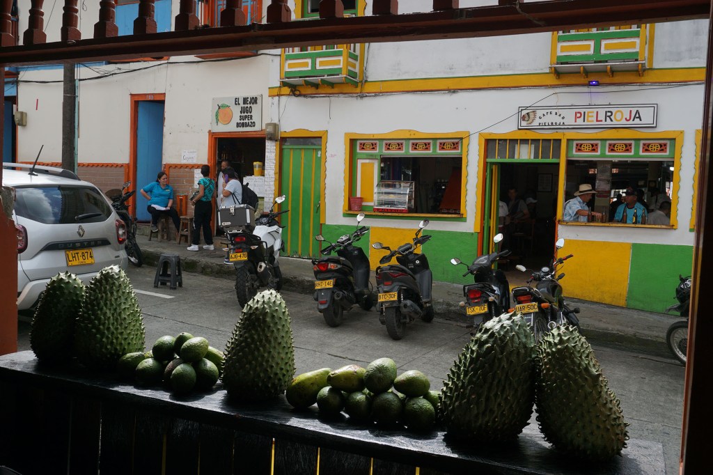 Pijao Το Pijao είναι ίσως το πιο γνήσιο από όλα τα χωριά που επισκεφθήκαμε, το πιο ενδιαφέρον και ταυτόχρονα αυτό που νιώσαμε πιο άβολα, σαν να είχαμε εισβάλει στον προσωπικό χώρο, στο σαλόνι κάποιου που δεν μας είχε προσκαλέσει. Πέρα από τα ένα δύο μαγαζιά που πουλούσανε σπόρους καφέ σε γυαλιστερές σακούλες, ήταν ένα μέρος γεμάτο νέους φαινομενικά της εργατικής τάξης και μαγαζιά που απευθύνονται στις ανάγκες τους, πχ μπαρ που παίζανε τη μουσική τους, φαγάδικα που προσφέρανε τις σούπες τους κλπ κλπ. Ένα μικρό μνημείο στην πλατεία του χωριού είναι αφιερωμένο σε έντεκα πεσόντες στρατιώτες του στρατού σε αιφνιδιαστική επίθεση της FARC σε μονάδες του πριν από μόλις 15 χρόνια ( το 2007 ) που σου δείχνει πόσο πρόσφατη ήταν η ανασφάλεια στην ευρύτερη περιοχή. Από την άλλη, και μόνο το γεγονός ότι στις μέρες μας το Pijao εμφανίζεται στους περισσότερους τουριστικούς οδηγούς και blog είναι ενδεικτικό του πόσο δραστικά έχουν βελτιωθεί τα πράγματα.