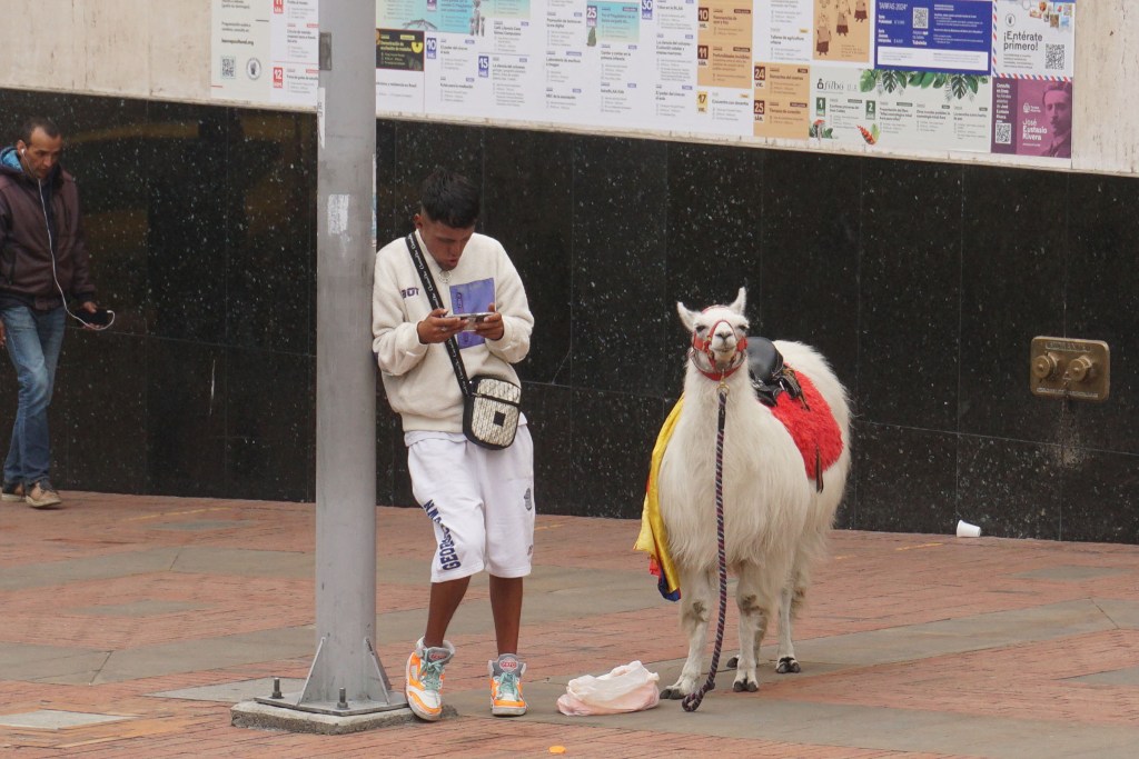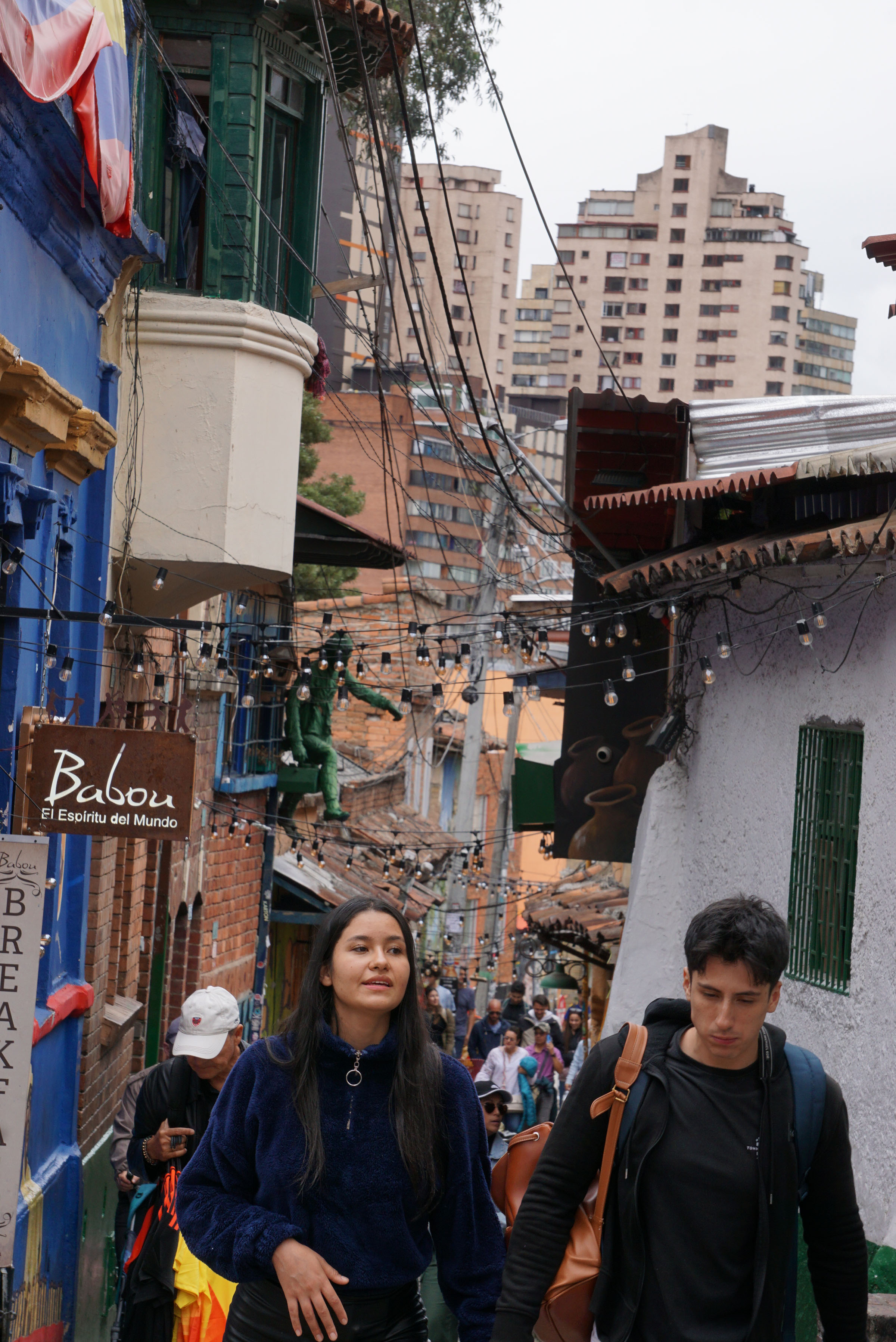 Την πρώτη μέρα επιλέγουμε να επισκεφτούμε το κέντρο της πόλης. Ο uber οδηγός μας προτείνει κοσμηματοπωλεία που πουλάνε σμαράγδια, κάτι που μοιάζει να είναι μόδα εδώ για τους επισκέπτες αν και η σκέψη του να κουβαλάω πολύτιμες πέτρες κατά τη διάρκεια του ταξιδιού της επιστροφής σε διάφορα αεροδρόμια μάλλον μου ακούγεται περίπλοκη. Φθάνουμε στην πλατεία Plaza de Bolivar de Bogota με το επιβλητικό κοινοβούλιο αλλά και πολλά πανό πάνω στα διάφορα αγάλματα να διαμαρτύρονται για ποικίλα θέματα. Ακριβώς άνωθεν της βρίσκεται η πολύ γραφική γειτονιά La Candelaria με τα ανηφορικά μονοπάτια της ανάμεσα σε art deco και αποικιακής αρχιτεκτονικής κτίσματα και τα επιβλητικά βουνά της πόλης στο βάθος του ορίζοντα.