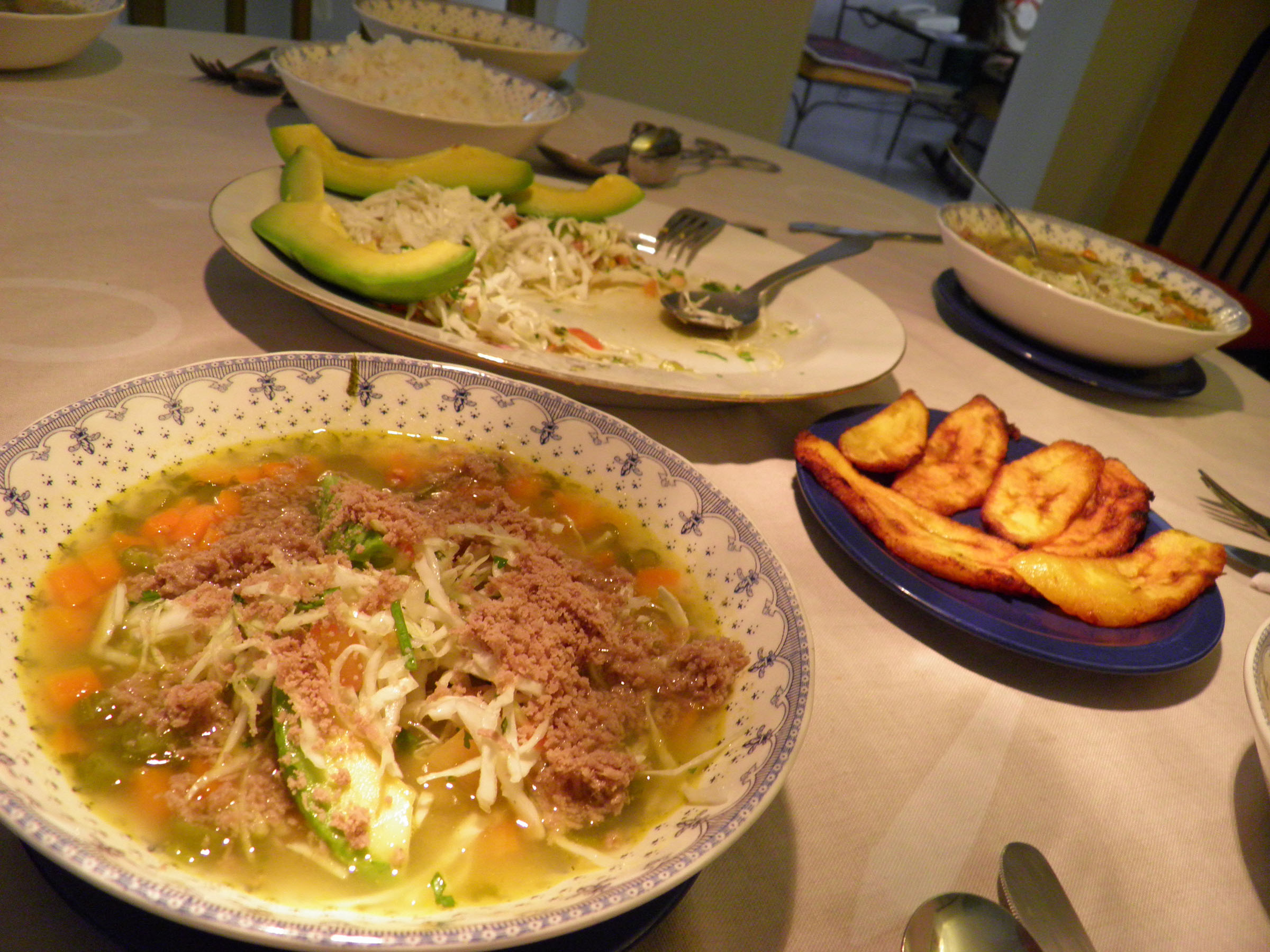 Σε ένα άρθρο μάλιστα που είδα πρόσφατα δημοσιευμένο στην lifo για την πόλη οι περισσότερες φωτογραφίες του γράφοντα ήταν από ένα γεύμα που είχαν απολαύσει σε ένα χλιδάτο εστιατόριο της πρωτεύουσας ( αλήθεια, lifo γιατί αυτός και όχι εγώ;…). H αλήθεια είναι ότι ίσως και το γεγονός ότι το ευρωπαϊκό πορτοφόλι μας μας δίνει πρόσβαση σε πολύ καλά εστιατόρια να συνέβαλε στο να απολαύσω τα γεύματα στο συγκεκριμένο ταξίδι όσο σε λίγα άλλα. Αλλά και από την πρώτη μου επίσκεψη προ δεκαετίας, ακόμα θυμάμαι το Ajiaco που τρώγαμε με την οικογένεια του Ricardo στη Μεντεγίν, μία σούπα τυπική της Μπογκοτά που συνδύαζε κρέας, φρούτα και ζαρζαβατικά φαινομενικά χωρίς καμία λογική αλλά σε ξάφνιαζε στη γεύση ειδικά όταν την συνδύαζες με τα τυπικά δεύτερα πιάτα τους ( platanos maduros/τηγανιτές μπανάνες, αρέπας και ντόπιο τυρί)