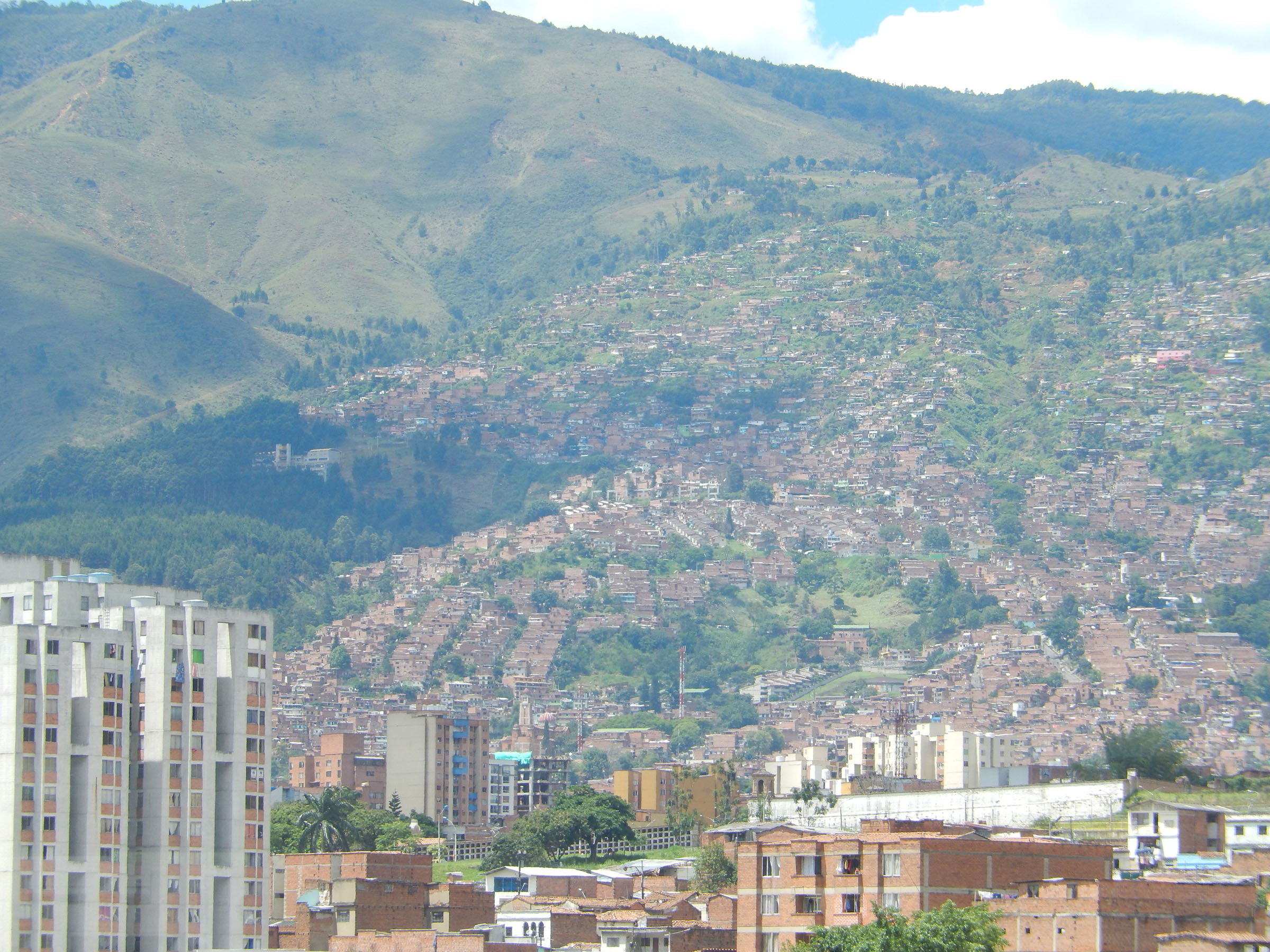 Ψάχνοντας online περιγραφές της Medellin από αρθρογράφους και άλλους ταξιδιώτες, διαβάζω ότι είναι η πόλη «της αιώνιας άνοιξης» λόγω του ήπιου, γλυκού κλίματος της δώδεκα μήνες το χρόνο αλλά και ότι φημίζεται ως πρωτοπόρα στην αστική ανάπτυξη. Σε γενικές γραμμές αποτελείται από πολλά πανύψηλα κτίρια που φωλιάζουν μαζί με πιο τυπικές γειτονιές και μερικές παραγκουπόλεις στο κέντρο της πεδιάδας Aburrá , περιτριγυρισμένα από τα βουνά της οροσειράς cordillera central. Η άναρχη δόμηση μοιάζει να στοχεύει σε κατασκευές με όσο περισσότερο δυνατόν ύψος με λίγη έγνοια για ένα ενιαίο σχέδιο πόλης ή αισθητικό αποτέλεσμα. Οι έπαινοι online περισσότερο έχουν να κάνουν με το πως κάποια συγκοινωνιακά έργα έχουν ενώσει τα τμήματα αυτής της ποικιλόμορφης πόλης με αρμονία. Μποκοτά και Μεντελίν ταυτίζονται πολύ σε αυτό αν και παρόμοια αίσθηση μου αφήνουν οι φωτογραφίες άλλων μεγαλουπόλεων της ηπείρου που δεν έχω πάει όπως πχ το Σαο Πάολο ή το Καράκας .