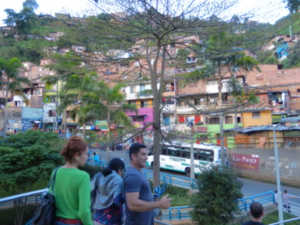 Πολύ πιο ενδιαφέρουσα εμπειρία ήταν η επίσκεψη μας στο parque arvi, ένα τεράστιο πάρκο οικολογικού χαρακτήρα με διαδρομές για πεζοπορία και παραδόξως εύκολη πρόσβαση από την πόλη. Χρησιμοποιούμε το υπέργειο μετρό της μέχρι τον σταθμό Arvi όποτε και μετά επιβιβαζόμαστε στα metrocables, ένα σύστημα τελεφερίκ ως μέσω αστικής συγκοινωνίας που θεωρείται επαναστατικό ως προς τη σύλληψη του και επέτρεψε σε πολύ κόσμο από υποβαθμισμένες περιοχές της Μεντεγίν να πηγαίνουν στις όποιες δουλείες τους στο κέντρο σε λογικό χρόνο. Καθ’ οδόν λοιπόν προς το πάρκο αιωρούμαστε πάνω από το Σαντο Ντομίνγκο, στην comuna 1, μία από τις φαβέλες της πόλης όπου πριν μία δύο δεκαετίες δεν θα πήγαινες εκεί για κανένα μα κανένα λόγο.