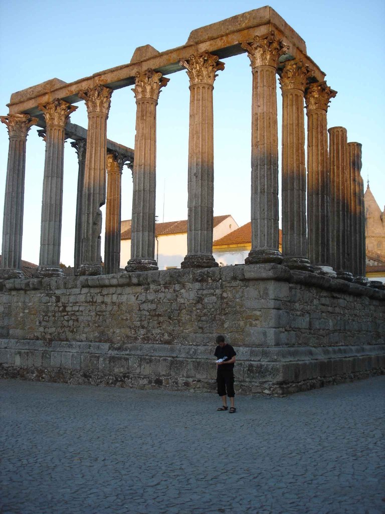 Έβορα – Μία πόλη της οποίας την ύπαρξη συνειδητοποίησα μέσω των «Παιχνιδιών Χωρίς Σύνορα» της ΕΡΤ ( μία αντιπροσωπεία της συμμετείχε στις παρδαλές αθλοπαιδίες που έβλεπα ως παιδί). ΄Ησυχη και καταπράσινη, η πόλη βρίσκεται στην ενδοχώρα της περιοχής Alentejo. Εκείνες τις μέρες ήταν ιδιαίτερα άδεια ίσως επειδή την επισκέφτηκα τον Ιούλιο οπότε και φαντάζομαι ότι όσοι μπορούσαν ίσως να είχανε καταφύγει σε κάποιο κοντινό ακρογιάλι για μπάνια. Το ιστορικό της κέντρο, μνημείο της Unesco από το ’86, υπογραμμίζει μικρά μα ουσιώδη στοιχεία της παραδοσιακής πορτογαλικής αρχιτεκτονικής όπως τα μπαλκόνια και τα πολύχρωμα πλακάκια. Μεταξύ άλλων και μία νότα αρχαιότητας, ένας ρωμαϊκός ναός που παραδόξως δένει αρμονικά με όλα τα άσπρα κτίσματα της «χρυσής εποχής» της Πορτογαλίας από τα τέλη 15ου-αρχές 16 αιώνα.