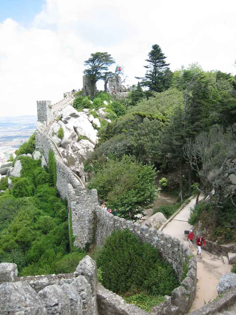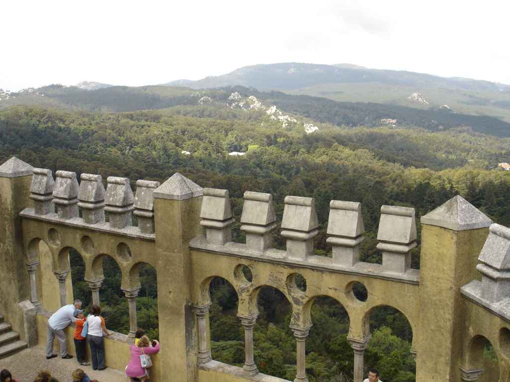 Sintra Μία ευχάριστη μονοήμερη εκδρομή από την πρωτεύουσα που μπορεί να πραγματοποιήσει κανείς σχετικά εύκολα είναι στους λόφους της Sintra όπου βρίσκεται το πολύχρωμο ανάκτορο Πένα. Πρόκειται λοιπόν για ένα παλάτι ρομαντικού ρυθμού. Τι συνιστά ακριβώς αυτό; Ομολογώ ότι δεν έχω την παραμικρή ιδέα μα διαβάζω (με αρκετή καθυστέρηση ομολογουμένως) ότι επρόκειτο για καλλιτεχνικό κίνημα του 18ου αιώνα με έμφαση στην λογοτεχνία τον ατομικισμό και τον παγανισμό. Παρόλα αυτά η απόφαση να χτιστεί το συγκεκριμένο κτίσμα πάρθηκε με βάση μία θρησκευτική πρόφαση, συγκεκριμένα μετά από «εμφάνιση της Παναγίας» στην περιοχή. Η ημέρα της πεζοπορίας μας ήταν αίθρια και καλοκαιρινή και ταυτόχρονα υπήρχε μία δροσιά χάρη στα πεύκα, στις ακακίες και τους ευκάλυπτους που το περιβάλλουν ( η περιοχή γύρω από το ανάκτορο είναι χαρακτηρισμένο εθνικό πάρκο).