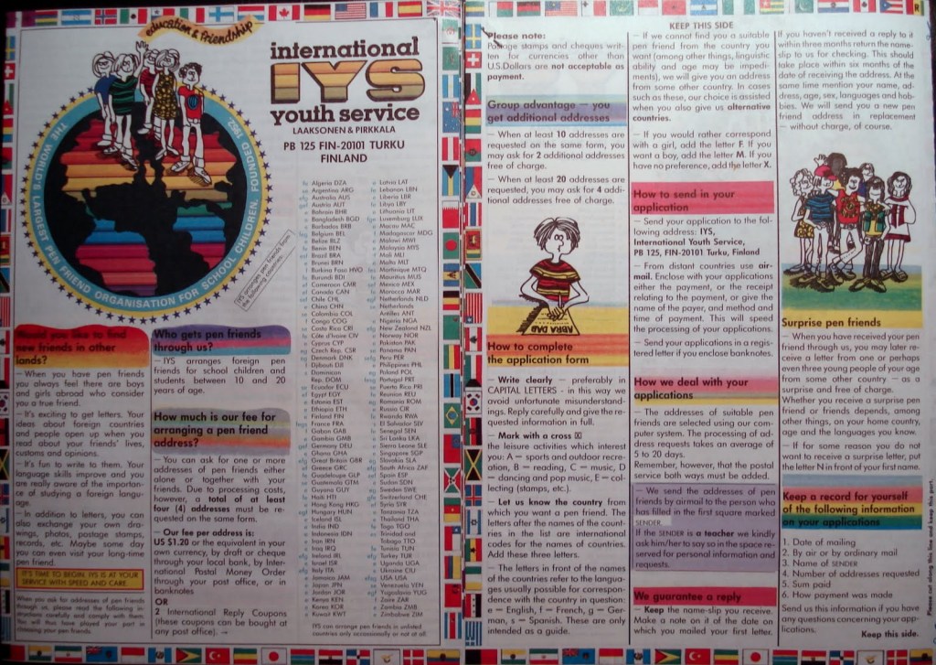 Με την ευκαιρία του ταξιδιού μου εκεί οργανώνω και συναντώ την penfriend μου την Carla με την οποία έγραφα γράμματα έφηβος προκειμένου να εξασκήσουμε και οι δύο τα αγγλικά. Ήταν κάτι που συχνά προωθούσανε τα φροντιστήρια αγγλικών, προκειμένου οι μαθητές τους να βελτιωθούν στο γραπτό λόγο και την σύνταξη επιστολών. Ο φορέας που το οργάνωνε ήταν ο IYS international service με έδρα την Φινλανδία. Θυμάμαι ότι συμπλήρωνες μία αίτηση, διάλεγες τρεις χώρες από τις οποίες θα ήθελες να σου εντοπίσουνε κάποιο άλλο φιλόδοξο και γεμάτο περιέργεια παιδί με το οποίο θα αρχίσεις μία ταχυδρομική φιλία ακονίζοντας την ίδια στιγμή τα γλωσσικά σου προσόντα.