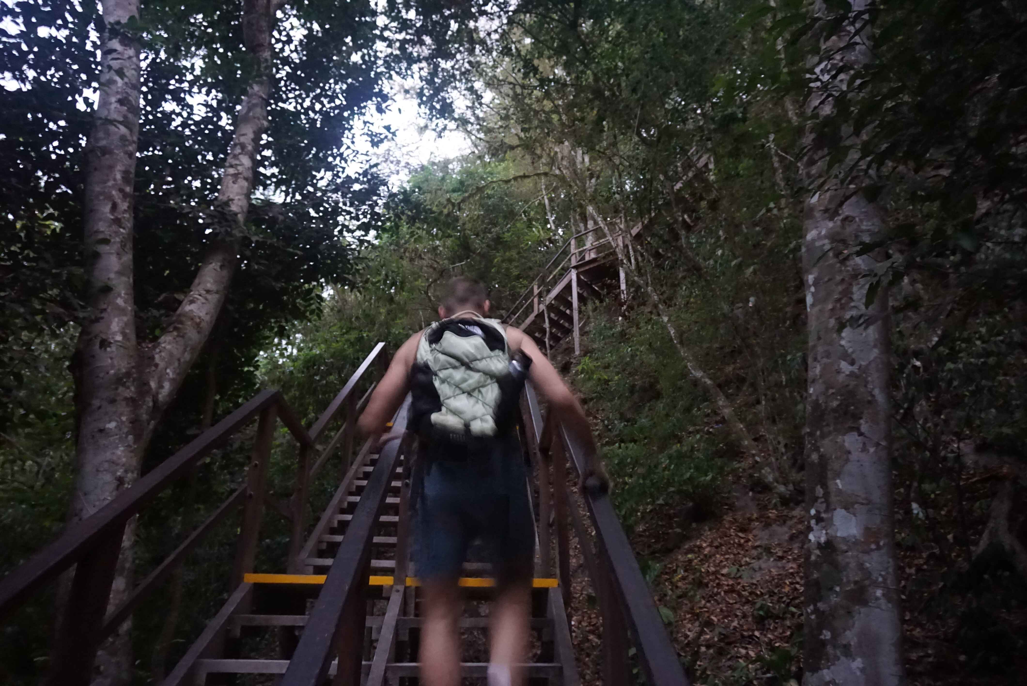 Η προγραμματισμένη μας περιήγηση μας είναι προγραμματισμένη για τις 4 το πρωί. Αυτό σημαίνει ότι μετά από αρκετές ώρες πτήσης και άγχους, περιοριζόμαστε σε ελάχιστο ύπνο και ξυπνάμε στις 2 προκειμένου να μας παραλάβει ο οδηγός από το ξενοδοχείο, να κατευθυνθούμε και να συναντήσουμε 5-6 άλλους τουρίστες ( όλοι αμερικανοί ) σε άλλο κατάλυμα ώστε να καταλήξουμε στη συνέχεια στο πάρκο κυριολεκτικά μέσα στα μαύρα σκοτάδια. Με αυτό το τρόπο αποφεύγουμε την αφόρητη ζέστη της ημέρας και επιπλέον έχουμε το Ixpanpajul Nature Park σχεδόν όλο δικό μας ( αριθμώ ίσως άλλους 20-30 επισκέπτες να το εξερευνούν παράλληλα με εμάς). Οι διάφοροι ξεναγοί που πραγματοποιούν αυτά τα tours γνωρίζουν τα μονοπάτια σαν την παλάμη του χεριού τους. Μία από τις πιο έντονες στιγμές όλου του ταξιδιού είναι όταν σου υποδεικνύουν τον πρώτο ναό το περίγραμμα του οποίου ξεπροβάλει ξαφνικά μπροστά σου. Υπήρχε απόλυτη σιγή πέραν των ήχων κάποιων εντόμων και πραγματικά ήταν κάτι το συγκινητικό. Φαντάζεσαι πως ταξιδεύεις στον χωροχρόνο, πως έτσι θα πρέπει να ήταν η αίσθηση του να είσαι εκεί, εκατοντάδες χρόνια πριν, ινδιάνος κατευθυνόμενος κάπου μέσα στη ζούγκλα . Τα κτίσματα εντός του πάρκου υπήρξαν προ-κολομβιανοί ναοί του πολιτισμών των Maya. Με το πρώτο φως της ημέρας ανεβαίνουμε σε έναν από αυτούς όπου έχει προστεθεί μία ξύλινη σκαλωσιά για να θαυμάσουμε το ξημέρωμα. Το να ξυπνάς με τα πουλιά και τα ζώα στο τροπικό δάσος, ειδικά το ηχητικό ντελίριο της φύσης είναι ένα απίστευτο προνόμιο. Τα drones σοφώς απαγορεύονται εδώ μιας και μας λένε ότι ενοχλούσαν τα τοπικά πτηνά (εν τέλη η χρήση drones σε άπειρα μέρη και καταστάσεις είναι κάτι το απόλυτα παρεμβατικό και εγωιστικό ).