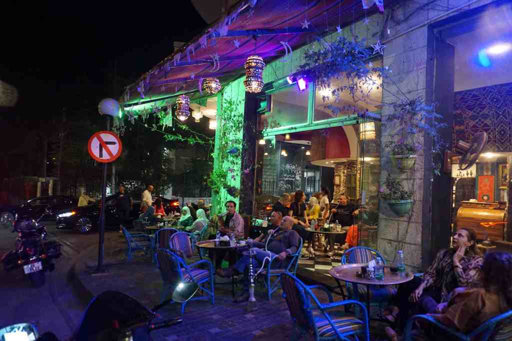 Μία ακόμα γειτονιά που επισκεφτήκαμε ένα βράδυ ήταν η Jabal Amman. Εκεί βρίσκεται και ο δρόμος του Ουρανιου Τοξου, ένα στενό με πολύχρωμες λάμπες αμπαζούρ να τον φωτίζουν. Ενώ έχει τη γοητεία του, δεν δικαιολογείται νομίζω το να έχει μετατραπεί σε σημείο προσκυνήματος για τους ντόπιους instagramers . Περισσότερο λειτουργεί σαν αφορμή να εξερευνήσεις περαιτέρω την νυχτερινή ζωή αυτής της πρωτεύουσας. Είναι ωραίο να βλέπει κανείς τους ντόπιους να ξεσκάνε, να κάθονται για τσάι και σίσα( νεργιλέ ) η για να πιουν χυμούς με εξωπραγματικές ποσότητες ζάχαρης.