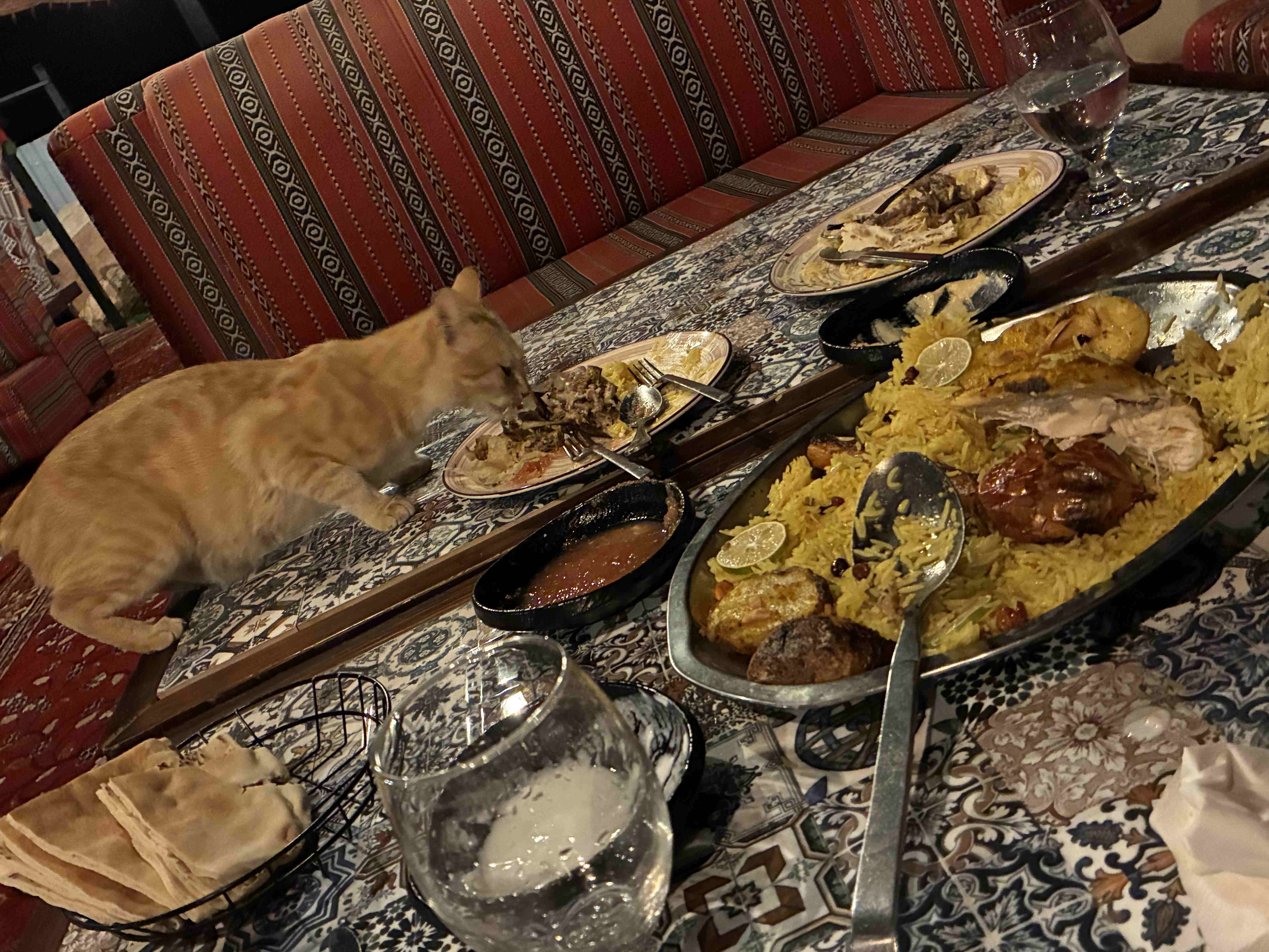 Όπου φάγαμε ήταν εξαιρετικά , θα αναφέρω μόνο ένα στο Αμμάν το Jordan heritage Restaurant στην γειτονιά Jabal Al-Weibdeh με μία πολύ ωραία αυλή και κάποια τοπικά πιάτα που ούτε ήξερα τι περιείχαν αλλά μου άρεσαν όλα χωρίς εξαίρεση. Γενικά στην Μέση Ανατολή το φαγητό είναι πολύ ανώτερη εμπειρία από πχ στην Ευρώπη και οι ίδιοι οι εμπλεκόμενοι μοιάζει να το πιστεύουν και να το τιμούν. Δεν αντιμετωπίσαμε επίσης την αναμενόμενη στομαχική διαταραχή που βίωσα σε άλλους παρόμοιους προορισμούς και ήμουν 100% σίγουρος ότι θα υποστώ και εδώ. Μου έχει μείνει ιδιαίτερα το «Μανσαφ», το εθνικό πιάτο της χώρας που περιλαμβάνει αρνί με γάλα και ρύζι