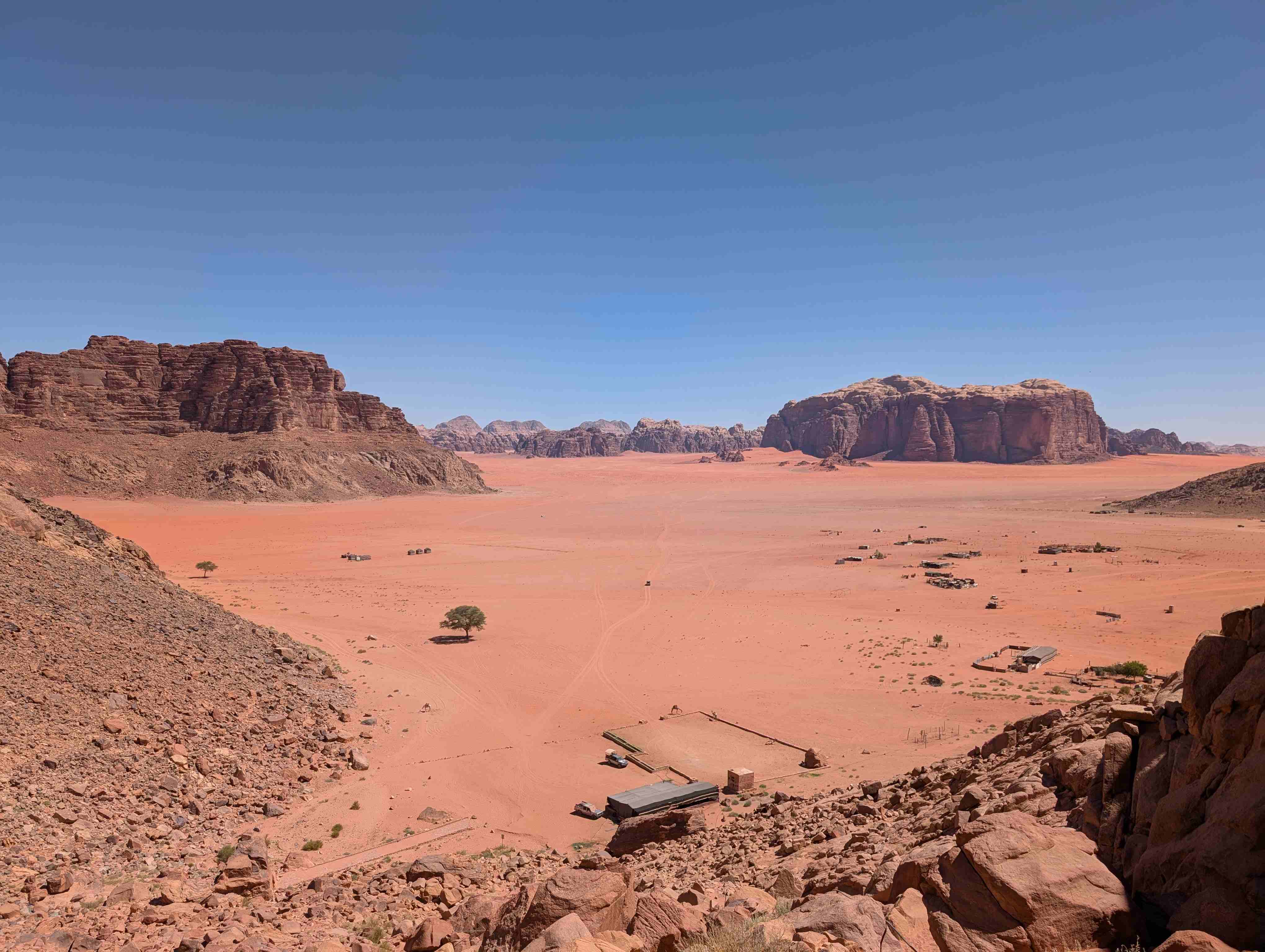 Προσγειωνόμαστε στο αεροδρόμιο Queen Rania από όπου και νοικιάζουμε αμάξι προκειμένου να ξεκινήσουμε την περιπέτεια μας. Το να έχουμε το δικό μας όχημα ήταν ένα ελεγχόμενο ρίσκο το οποίο πραγματικά έκανε τη διαφορά και απογείωσε το ταξίδι. Αποφεύγουμε να εισέλθουμε στην πρωτεύουσα και κινούμαστε αμέσως προς τα νότια κατα μήκος του καινούργιου και πολύ εντυπωσιακού «dessert highway», ενός αυτοκινητόδρομου που διασχίζει όλη τη χώρα από βορρά προς νότο . Το σχετικά πρόσφατο αυτό έργο ολοκληρώθηκε το 2020 ( και τμήμα του μόλις φέτος το 2025 ).