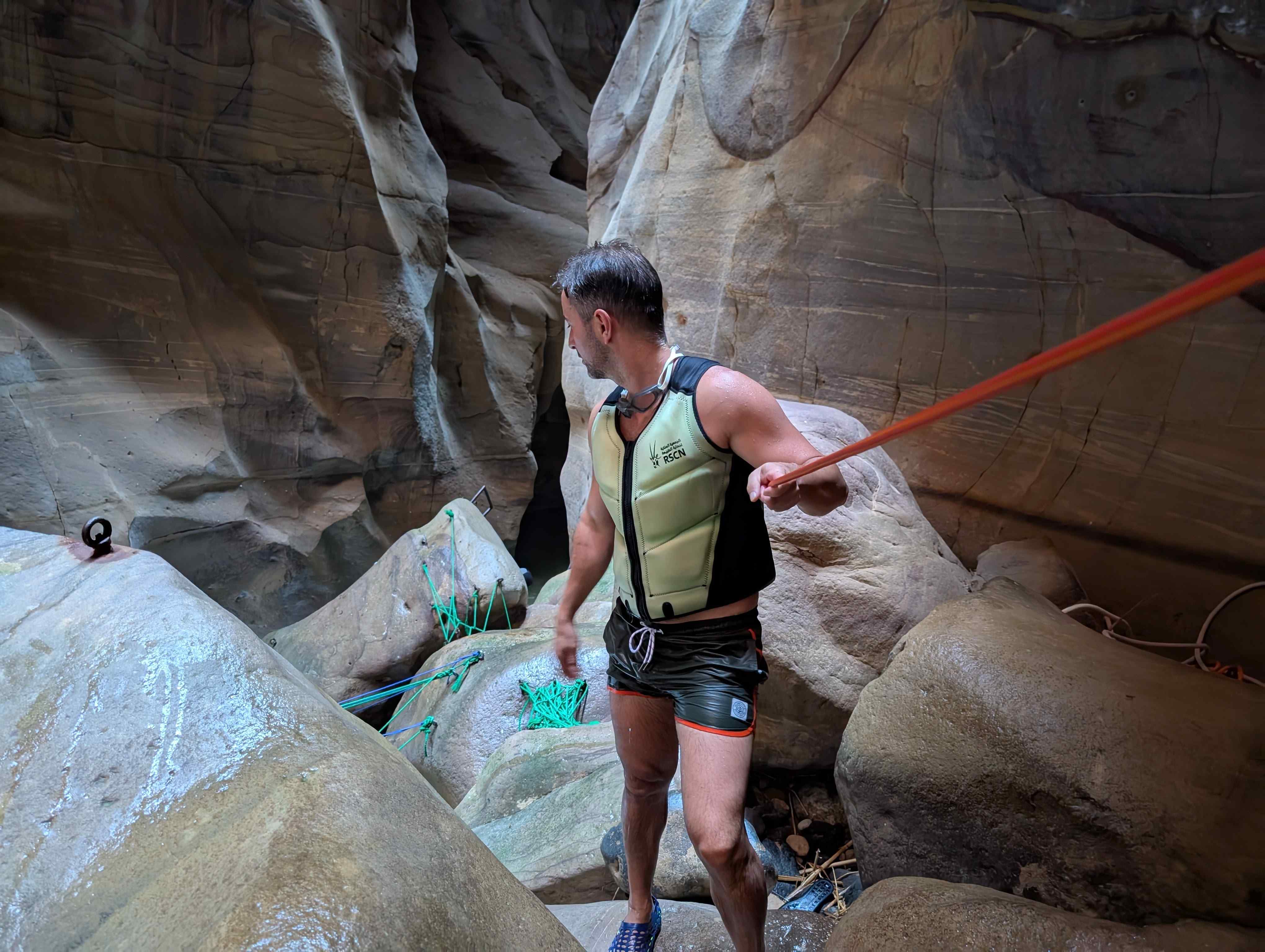 Η είσοδος εντός του εθνικού πάρκου ήταν ομολογουμένως ιδιαίτερα τσουχτερή. Μας δίνονται υποχρεωτικά σωσίβια και αν θέλει κανείς παπούτσια για το νερό. Στις διαφημιστικές φωτογραφίες του διαδικτύου η εμπειρία έμοιαζε με σχετικά απλή πεζοπορία που οποιοσδήποτε μπορεί να πραγματοποιήσει, κάτι σαν τις διαδρομές για αρχάριους σε ποτάμια των Γρεβενών από όπου κατάγομαι και όντως έτσι ήταν… για τα 200 πρώτα μέτρα. Το ζήτημα περιπλέκεται όταν αρχίζουν οι πρώτες αναβάσεις . Η ορμή του νερού ακόμα και εκεί που έχουν τοποθετηθεί σκάλες είναι κάθε άλλο παρά αμελητέα και όταν τελικά φθάνει κανείς στον τελικό καταρράκτη η αδρεναλίνη έχει ήδη εκτοξευθεί και συνοδεύεται από μία αίσθηση επιτεύγματος και περιπέτειας. Παιδιά κάτω την 18 απαγορεύεται να μπούνε στο εθνικό αυτό πάρκο από το 2018 και μετά όταν εικοσιένα μαθητές από ένα σχολείο πνίγηκαν μετά από μία ξαφνική πλημμύρα στην συνήθως ξηραμένη αυτή περιοχή.